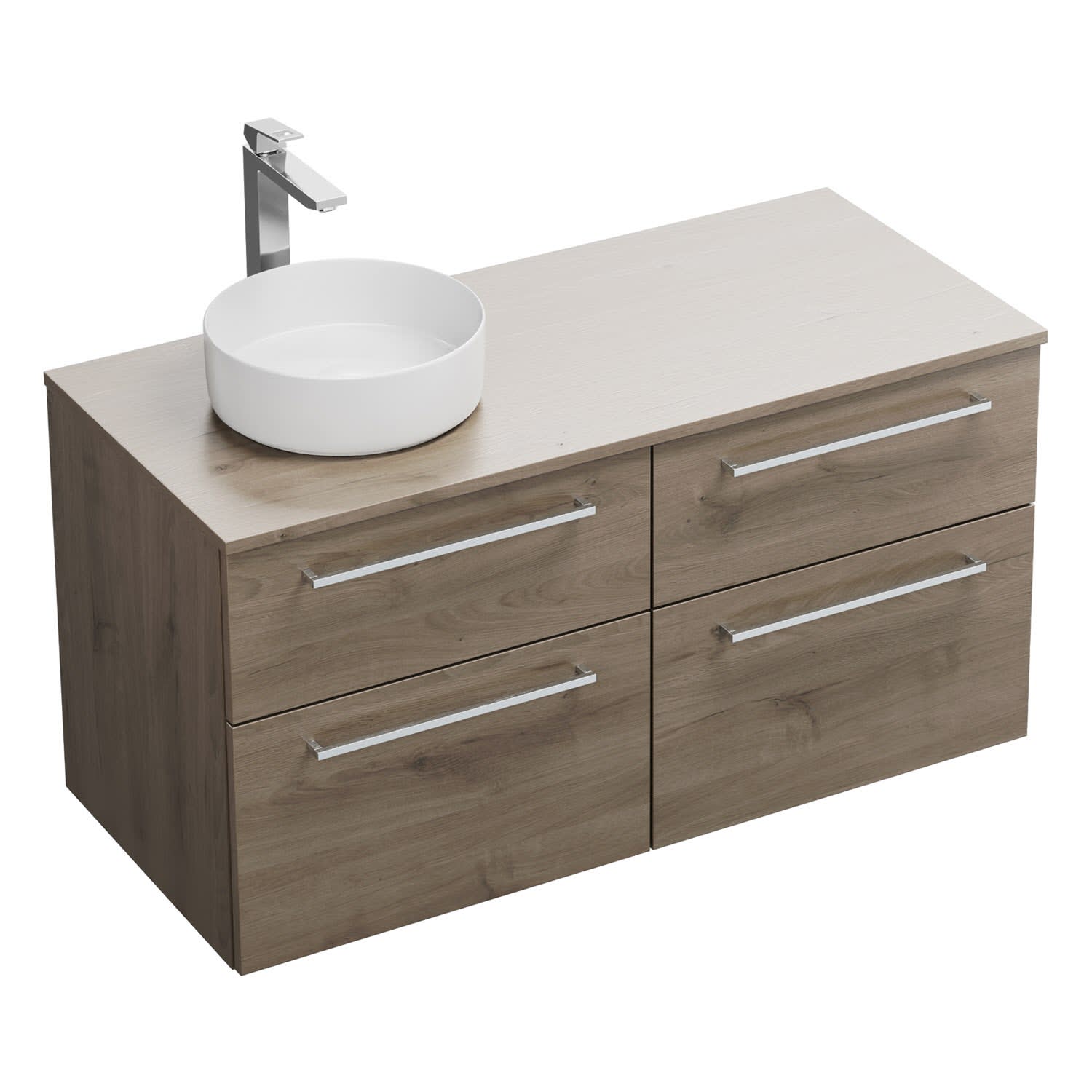 burgbad Eqio Waschtischkombination mit Keramik-Aufsatzwaschtisch 120 cm, links, mit Stangengriff P95