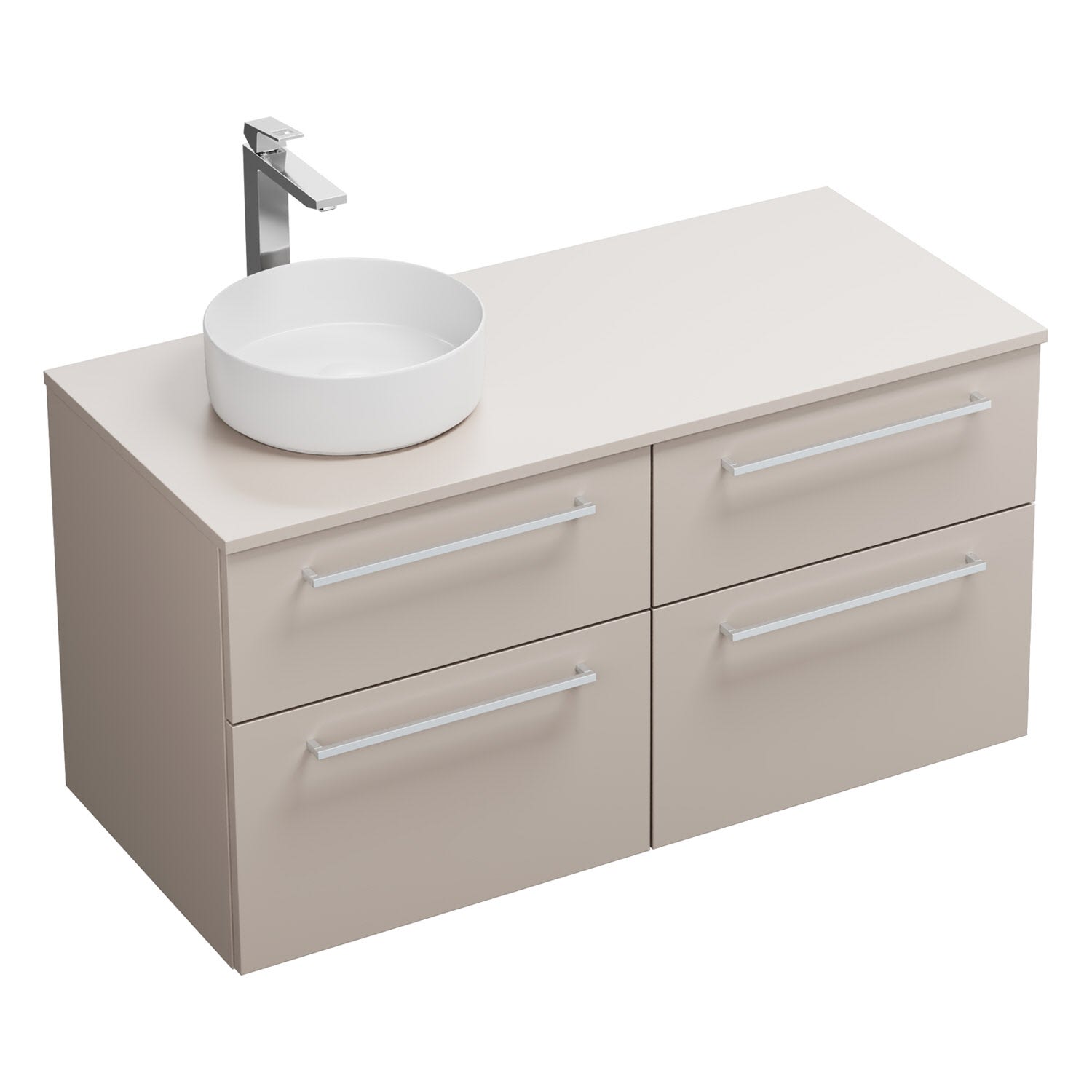 burgbad Eqio Waschtischkombination mit Keramik-Aufsatzwaschtisch 120 cm, links, mit Stangengriff P95