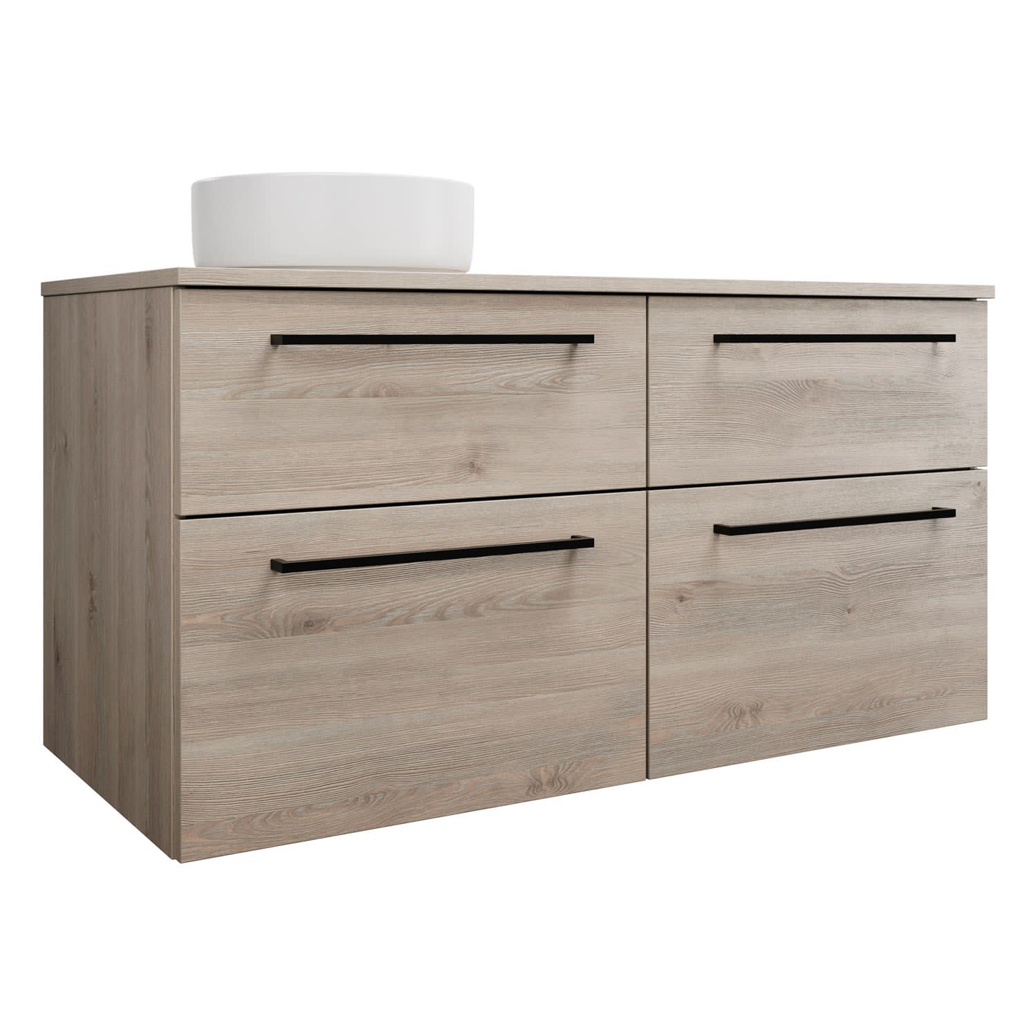 burgbad Eqio Waschtischkombination mit Keramik-Aufsatzwaschtisch 120 cm, links, mit Stangengriff G0234