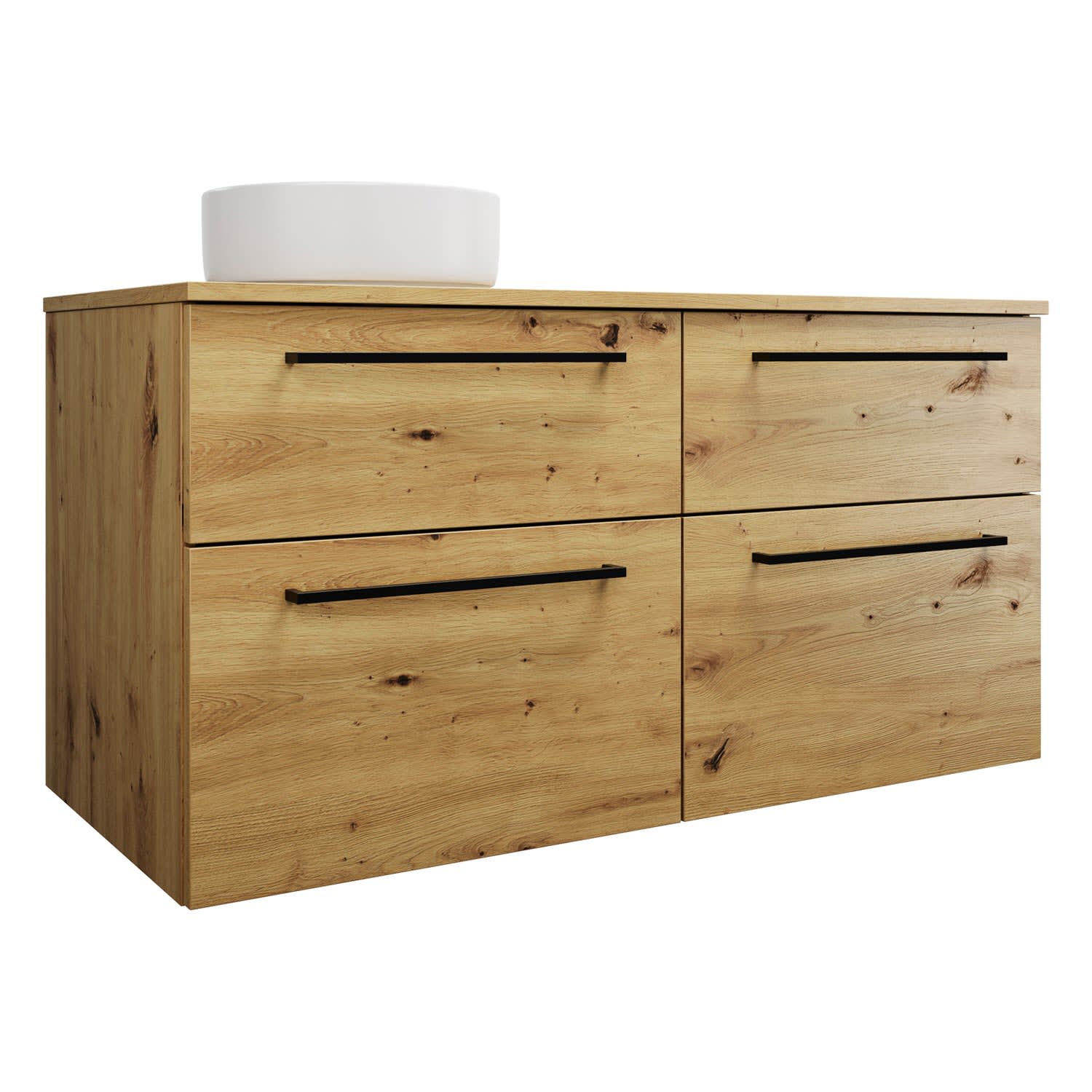 burgbad Eqio Waschtischkombination mit Keramik-Aufsatzwaschtisch 120 cm, links, mit Stangengriff G0234