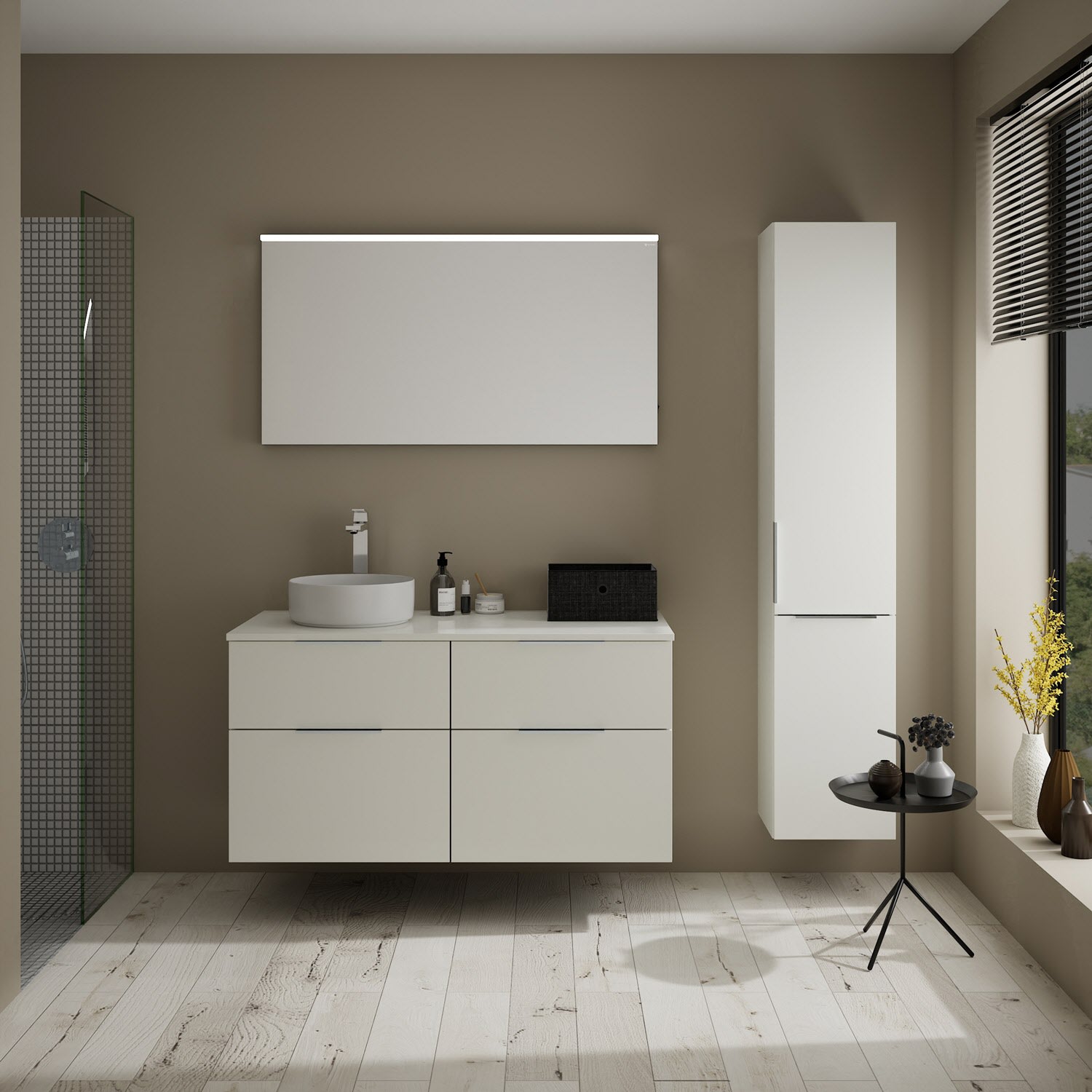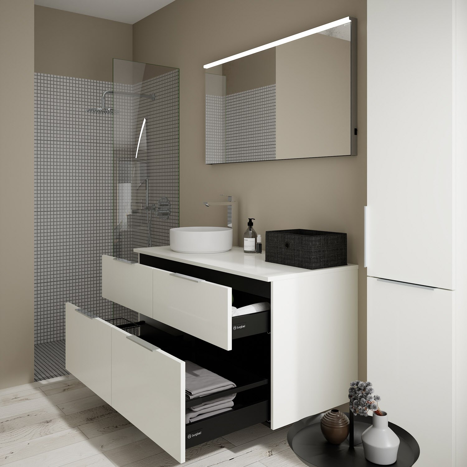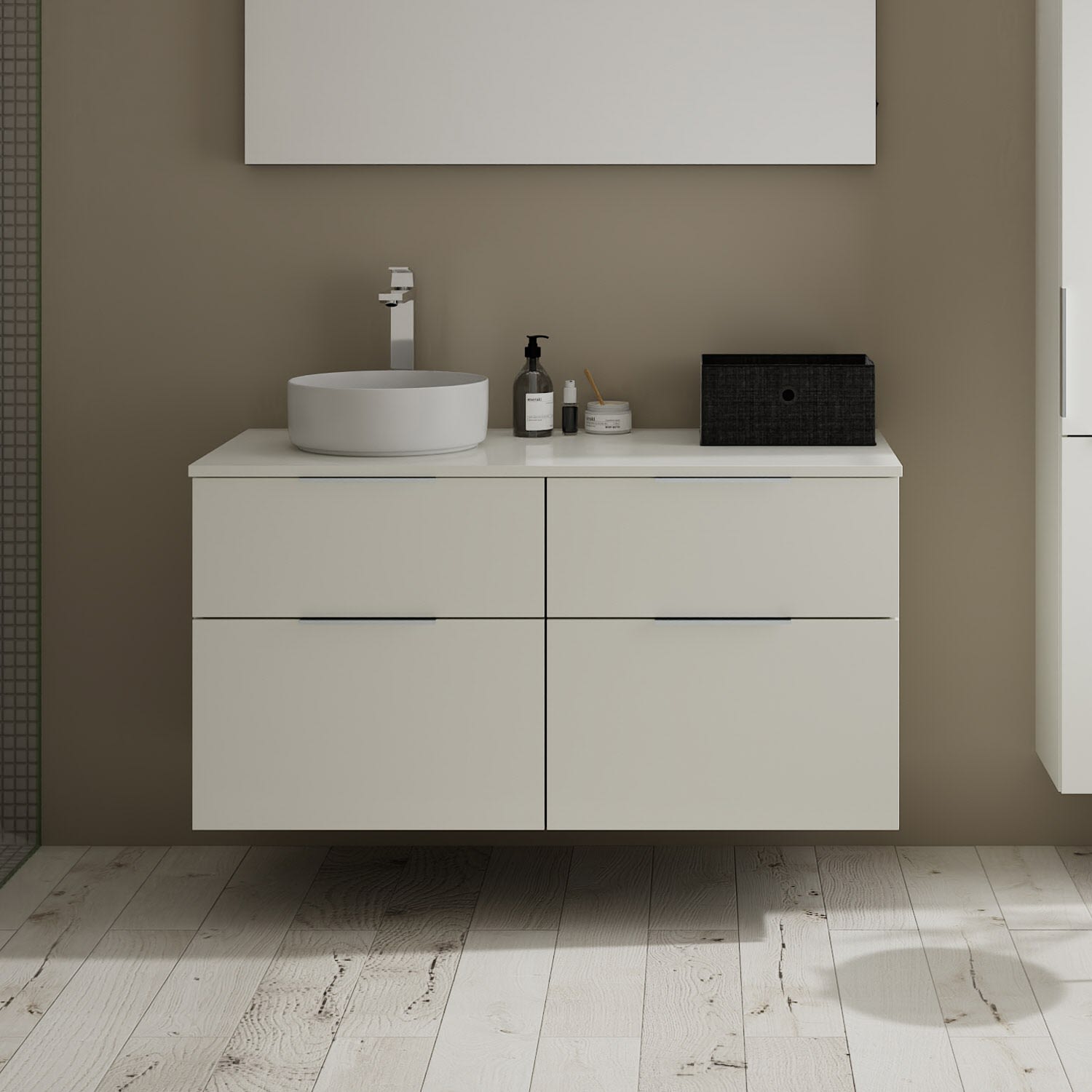 burgbad Eqio Waschtischkombination mit Keramik-Aufsatzwaschtisch 120 cm, links, mit Griff G0146