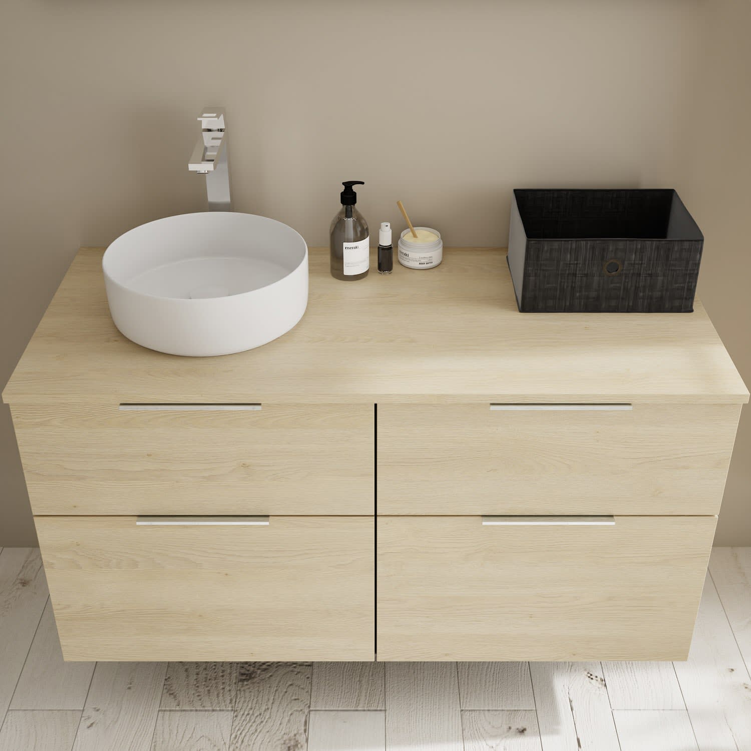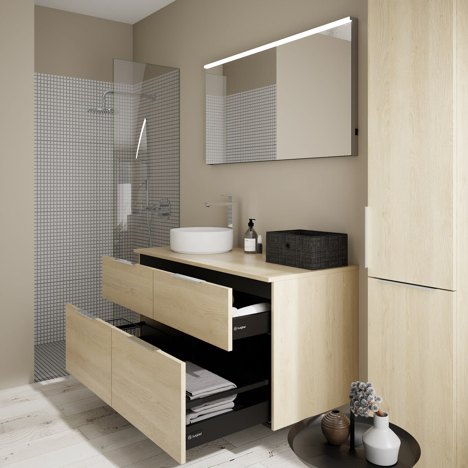 burgbad Eqio Waschtischkombination mit Keramik-Aufsatzwaschtisch 120 cm, links, mit Griff G0146