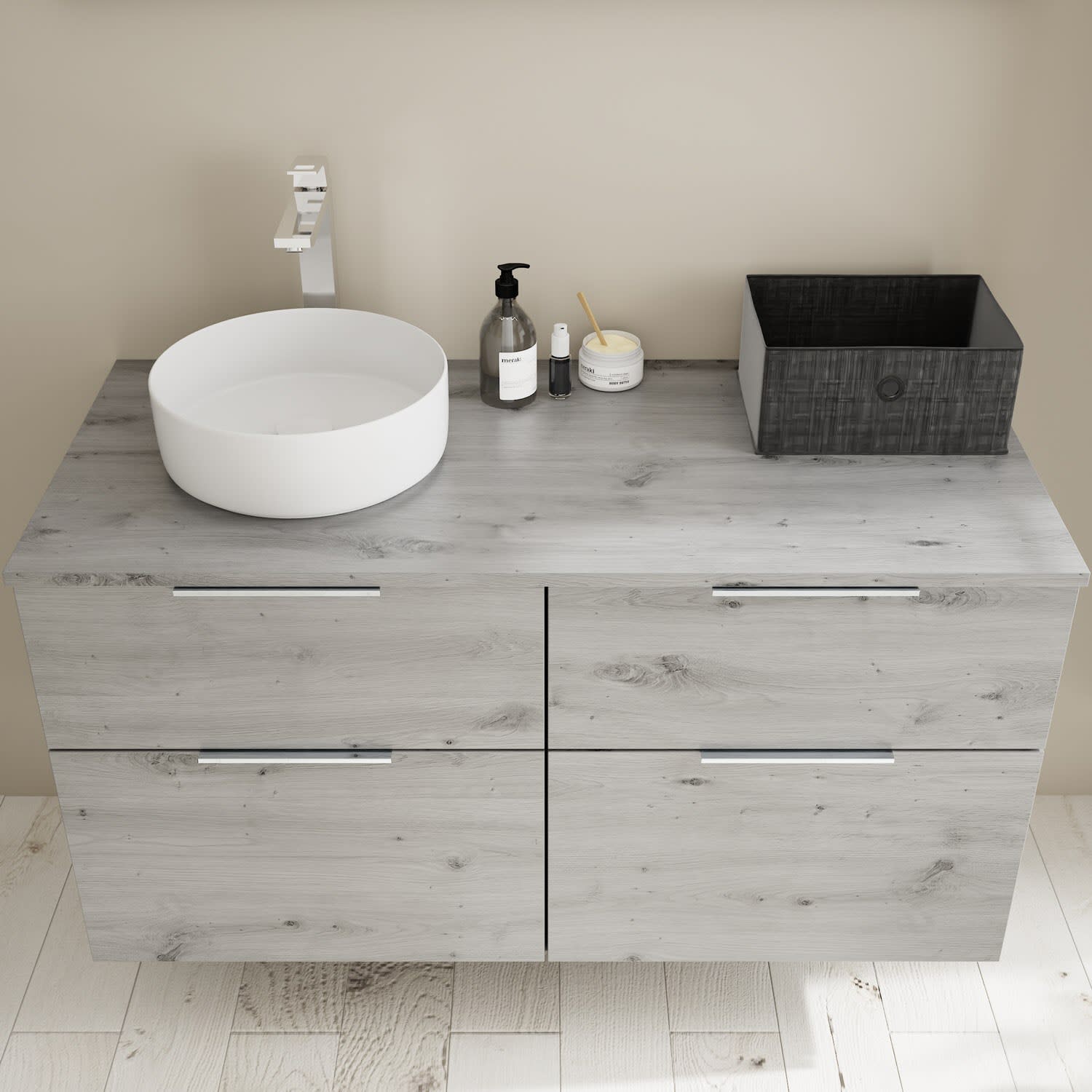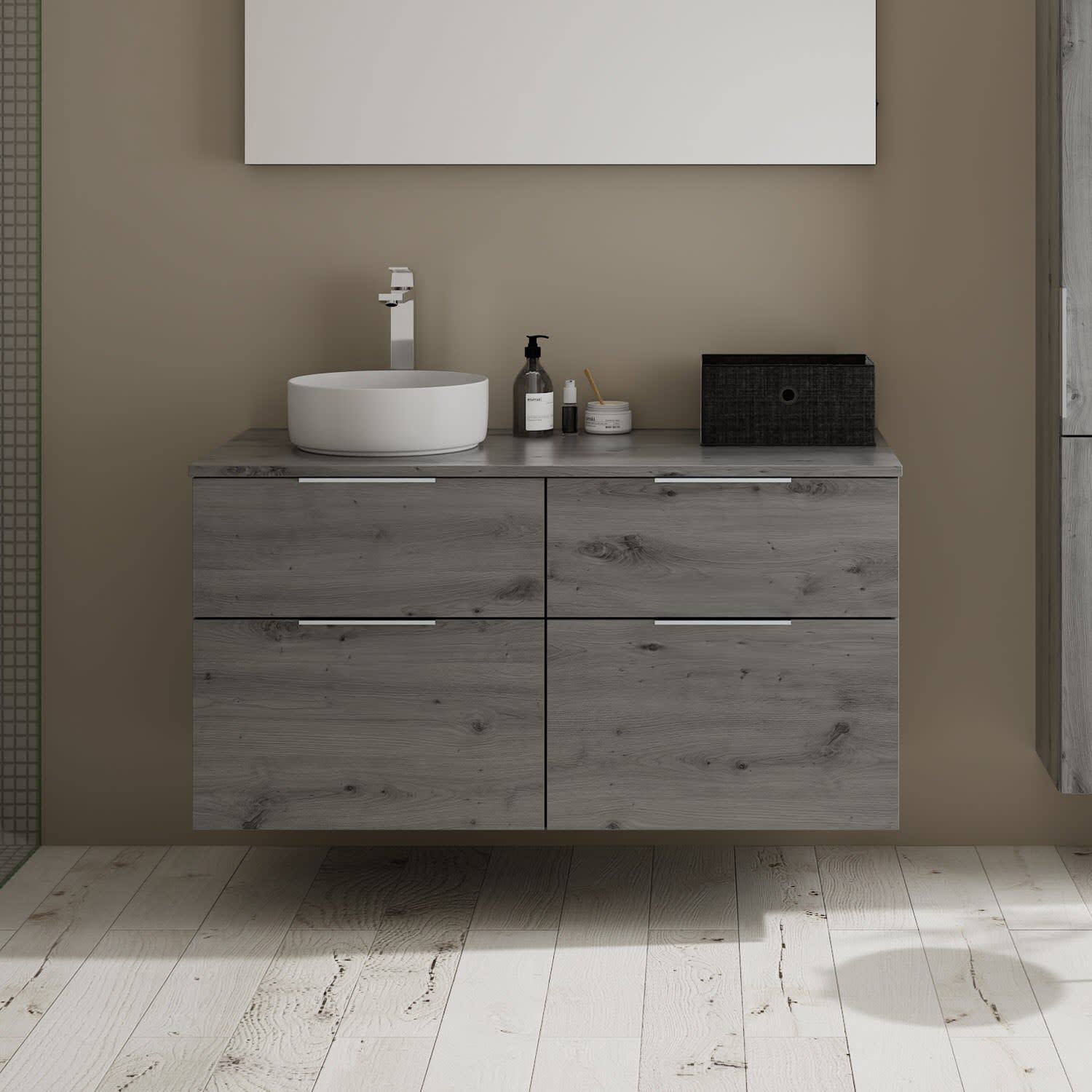 burgbad Eqio Waschtischkombination mit Keramik-Aufsatzwaschtisch 120 cm, links, mit Griff G0146