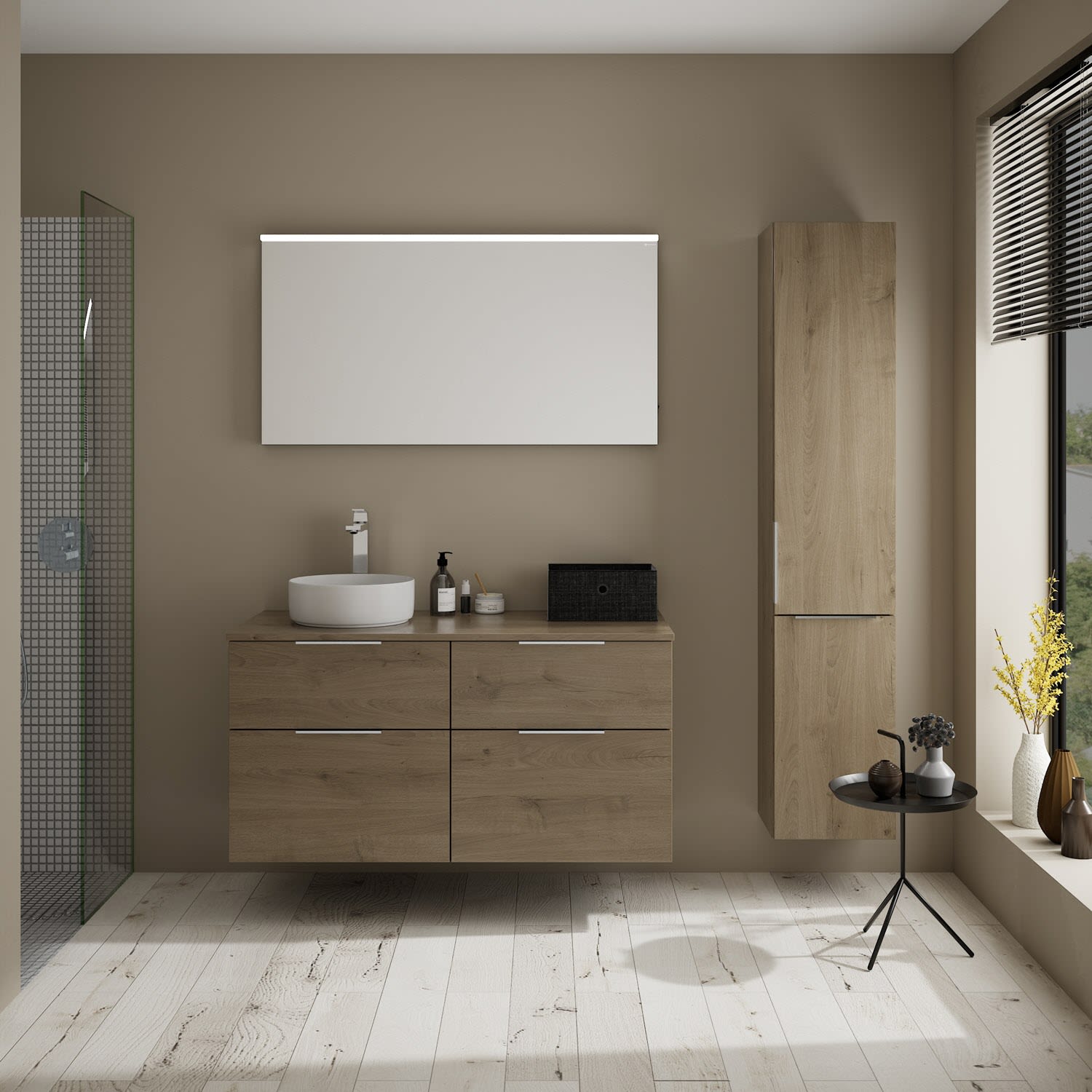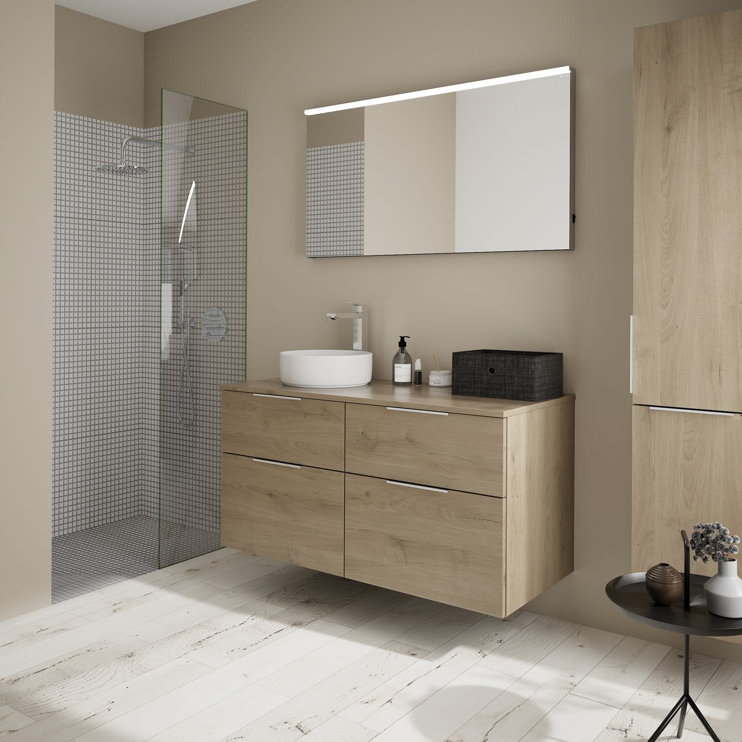 burgbad Eqio Waschtischkombination mit Keramik-Aufsatzwaschtisch 120 cm, links, mit Griff G0146