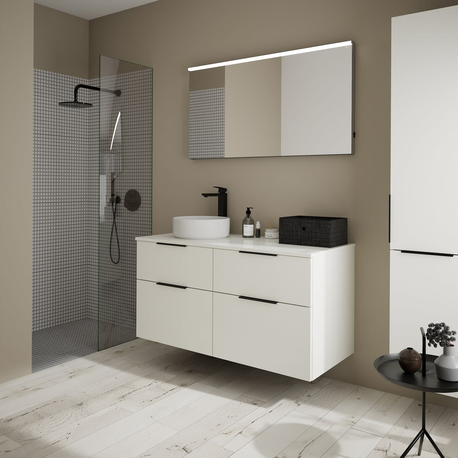 burgbad Eqio Waschtischkombination mit Keramik-Aufsatzwaschtisch 120 cm, links, mit Griff G0200