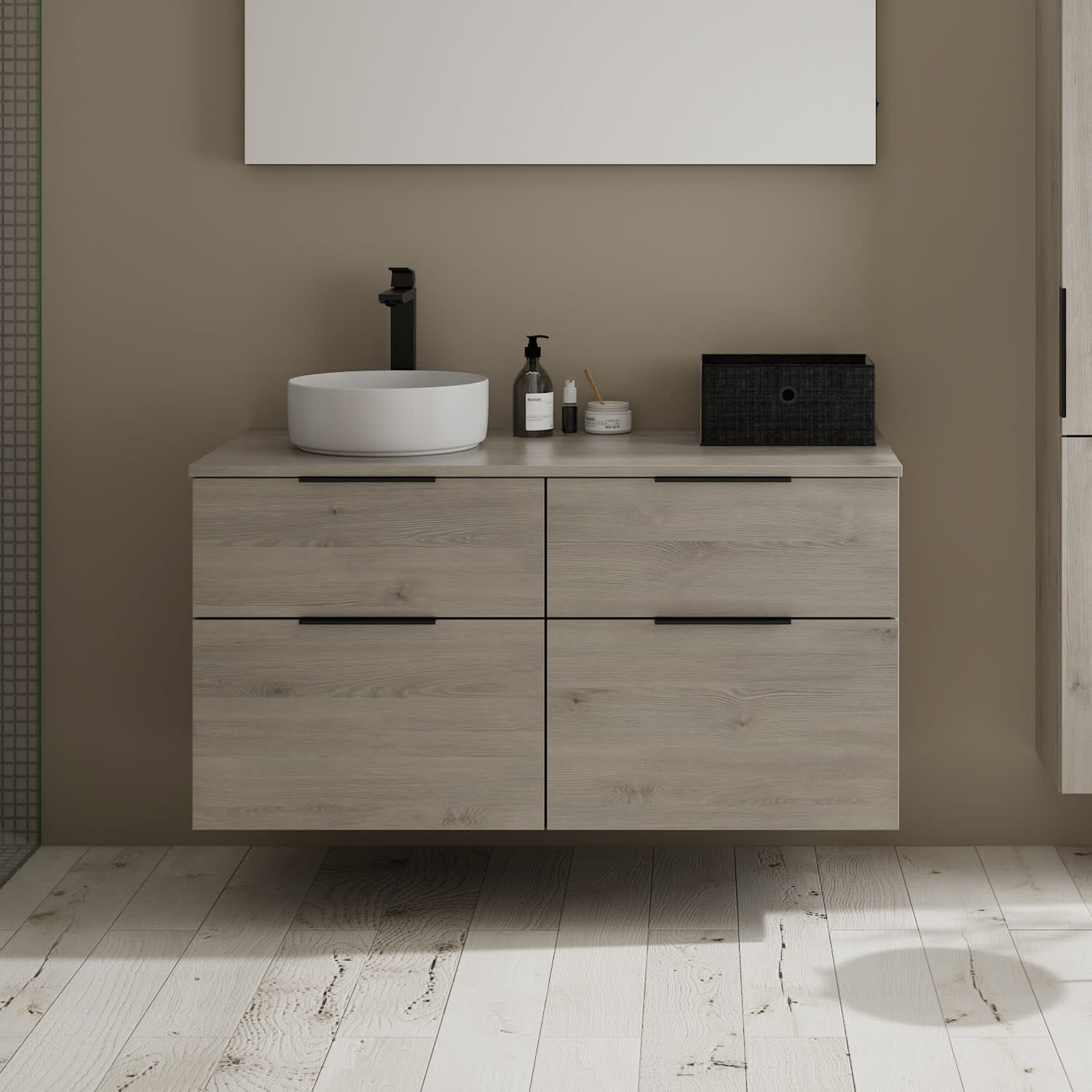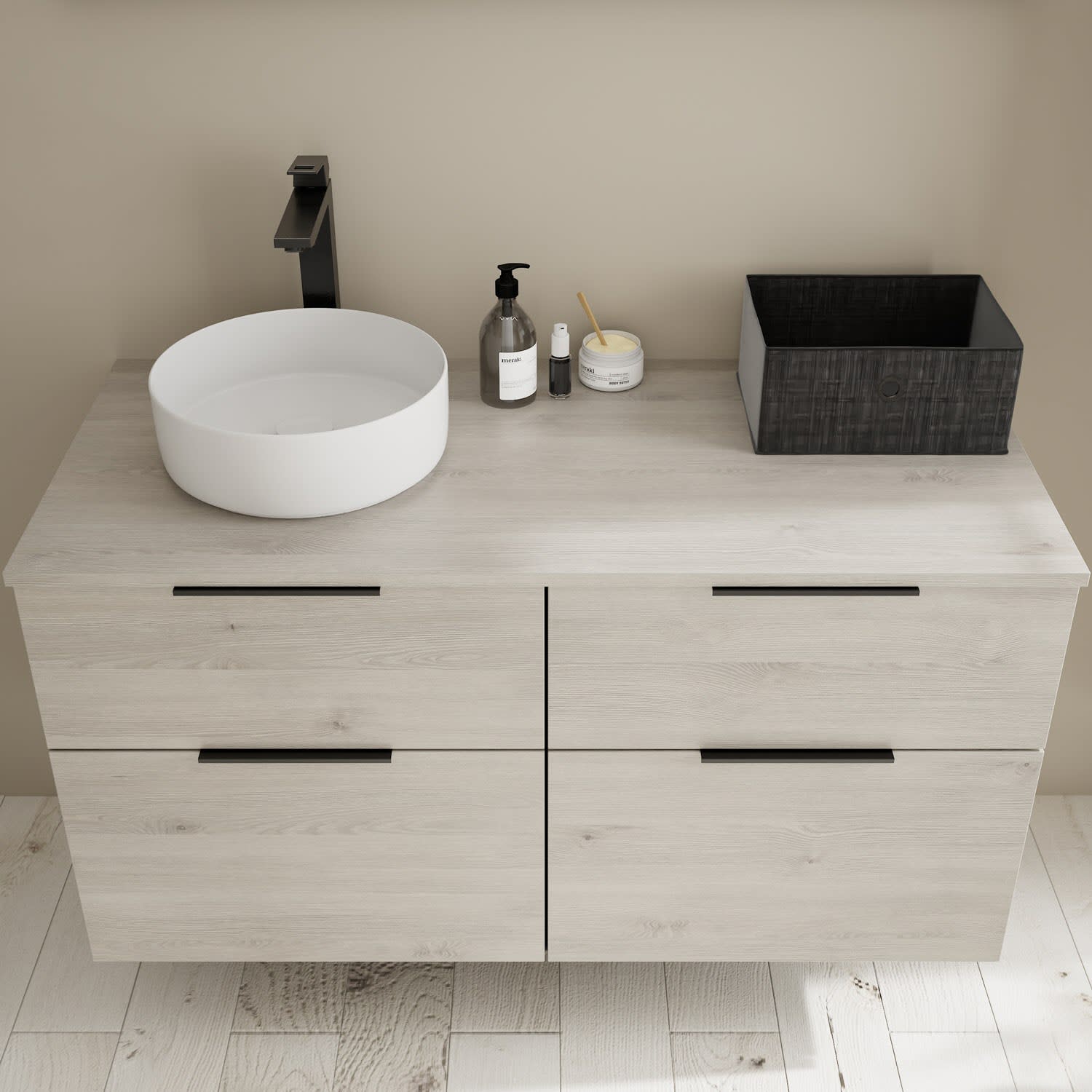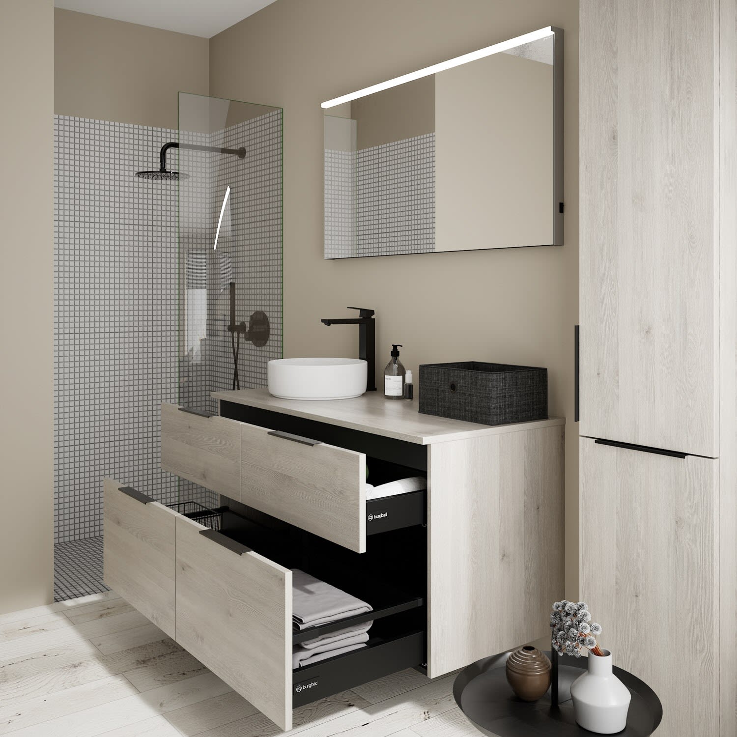burgbad Eqio Waschtischkombination mit Keramik-Aufsatzwaschtisch 120 cm, links, mit Griff G0200