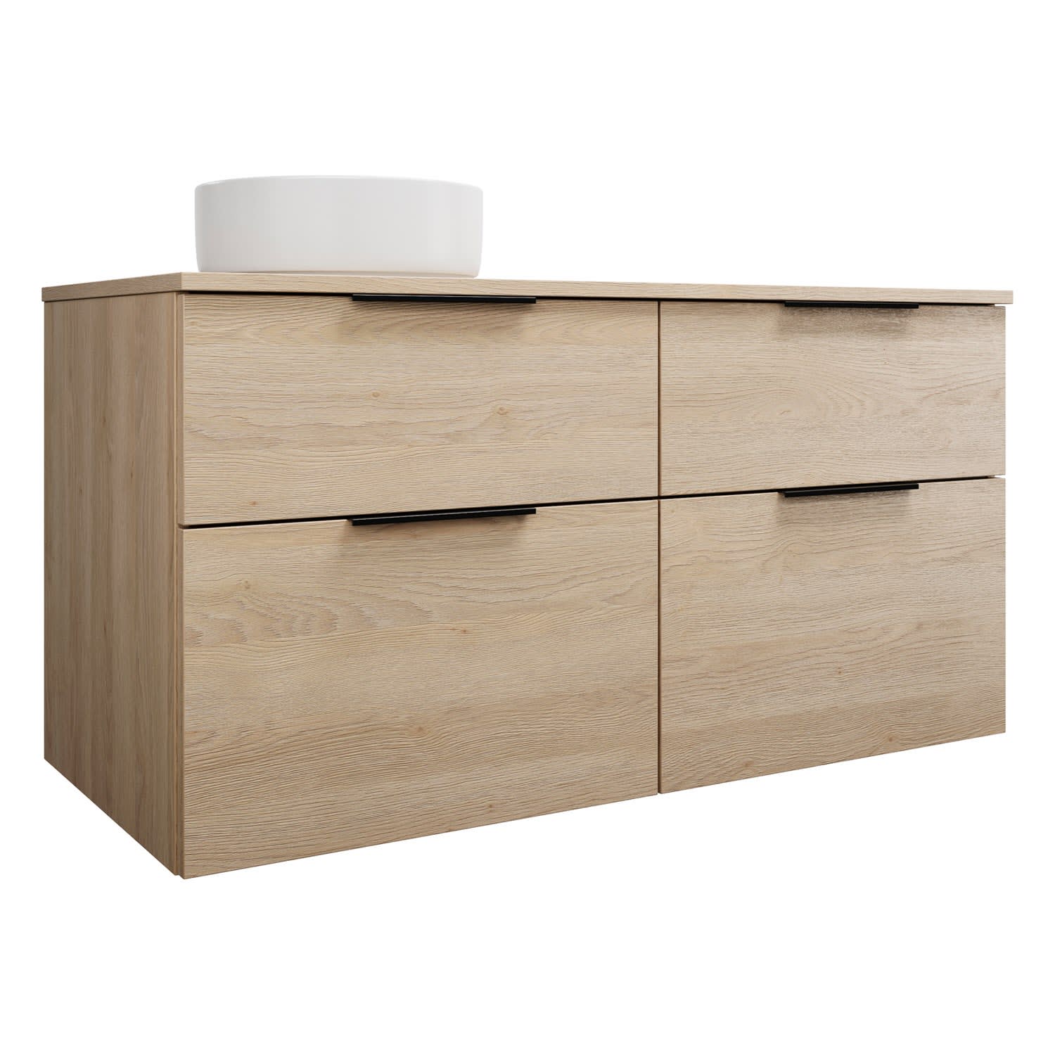 burgbad Eqio Waschtischkombination mit Keramik-Aufsatzwaschtisch 120 cm, links, mit Griff G0200