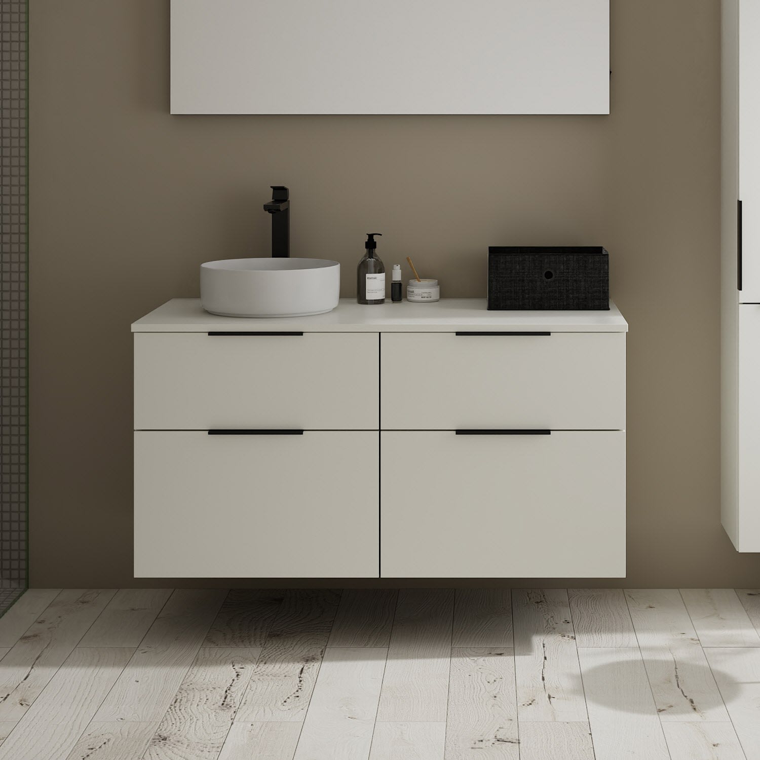 burgbad Eqio Waschtischkombination mit Keramik-Aufsatzwaschtisch 120 cm, links, mit Griff G0200