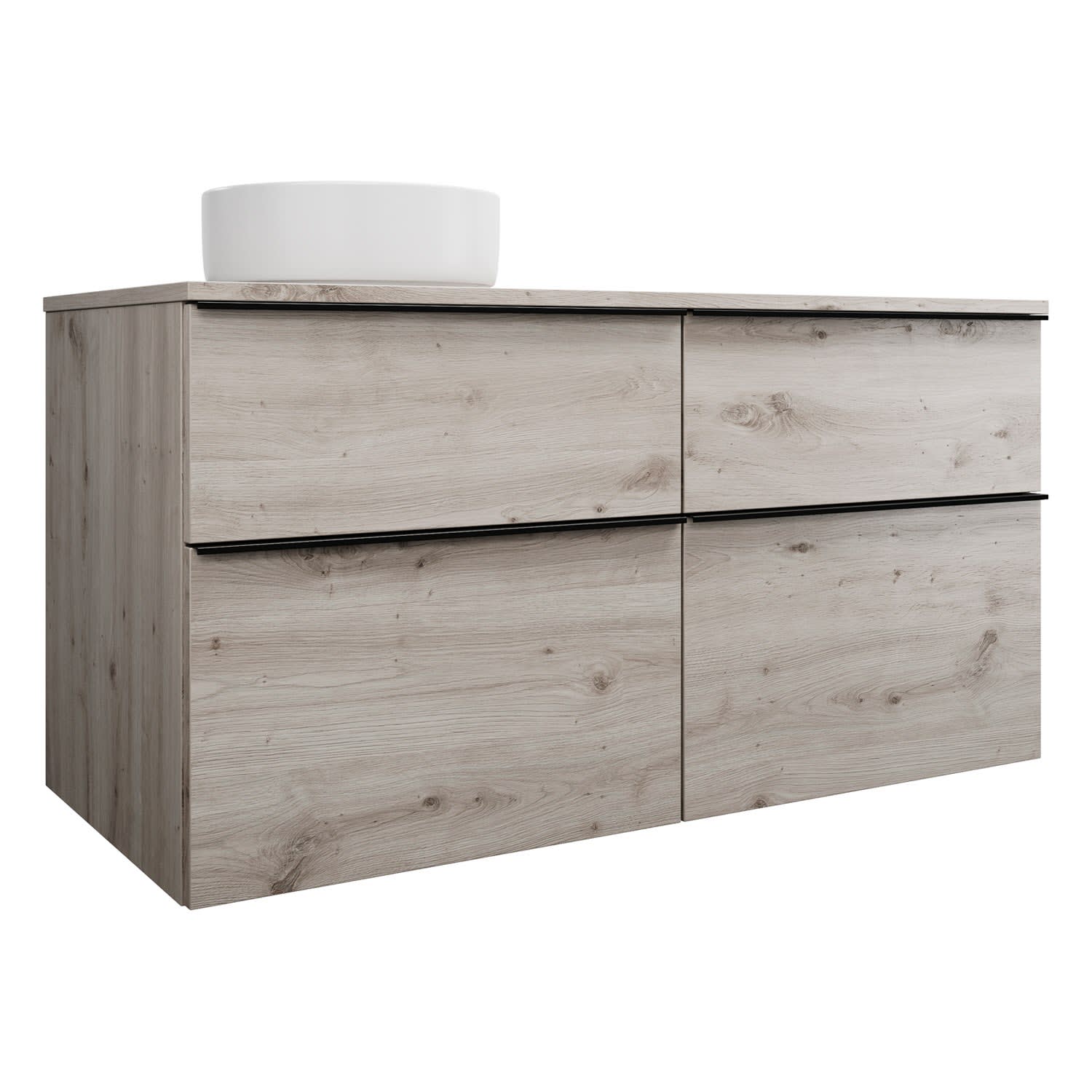 burgbad Eqio Waschtischkombination mit Keramik-Aufsatzwaschtisch 120 cm, links, mit Griffleiste G0252