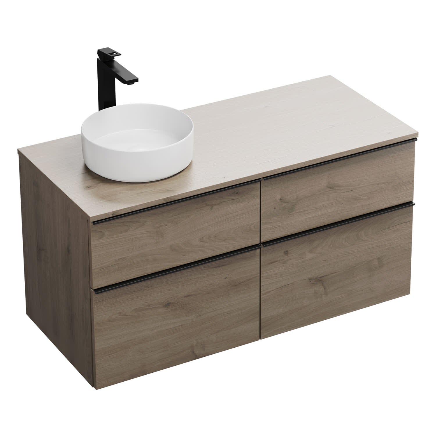 burgbad Eqio Waschtischkombination mit Keramik-Aufsatzwaschtisch 120 cm, links, mit Griffleiste G0252