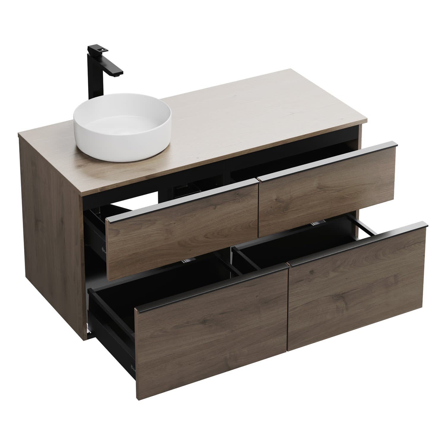 - 2 Schubladen oben, 35 cm tief, mit Siphonausschnitt und Inneneinteilung