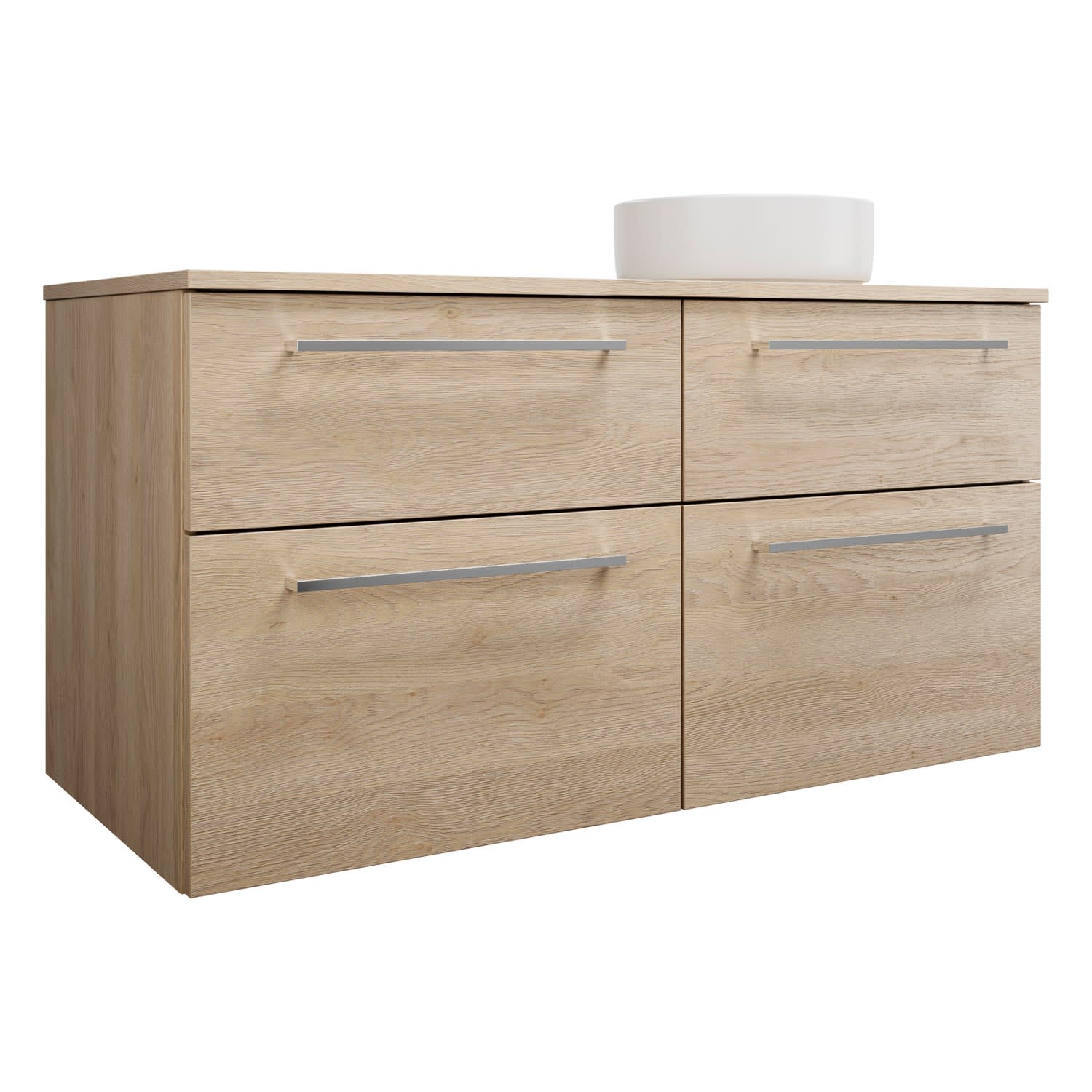 burgbad Eqio Waschtischkombination mit Keramik-Aufsatzwaschtisch 120 cm, rechts, mit Stangengriff P95