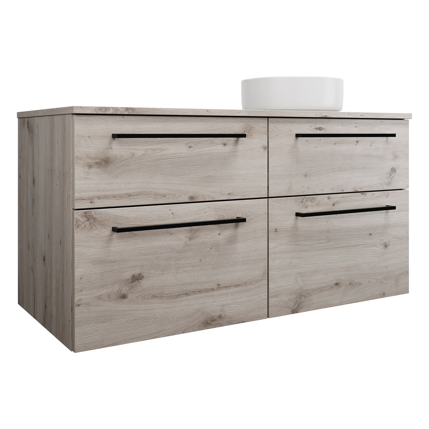 burgbad Eqio Waschtischkombination mit Keramik-Aufsatzwaschtisch 120 cm, rechts, mit Stangengriff G0234