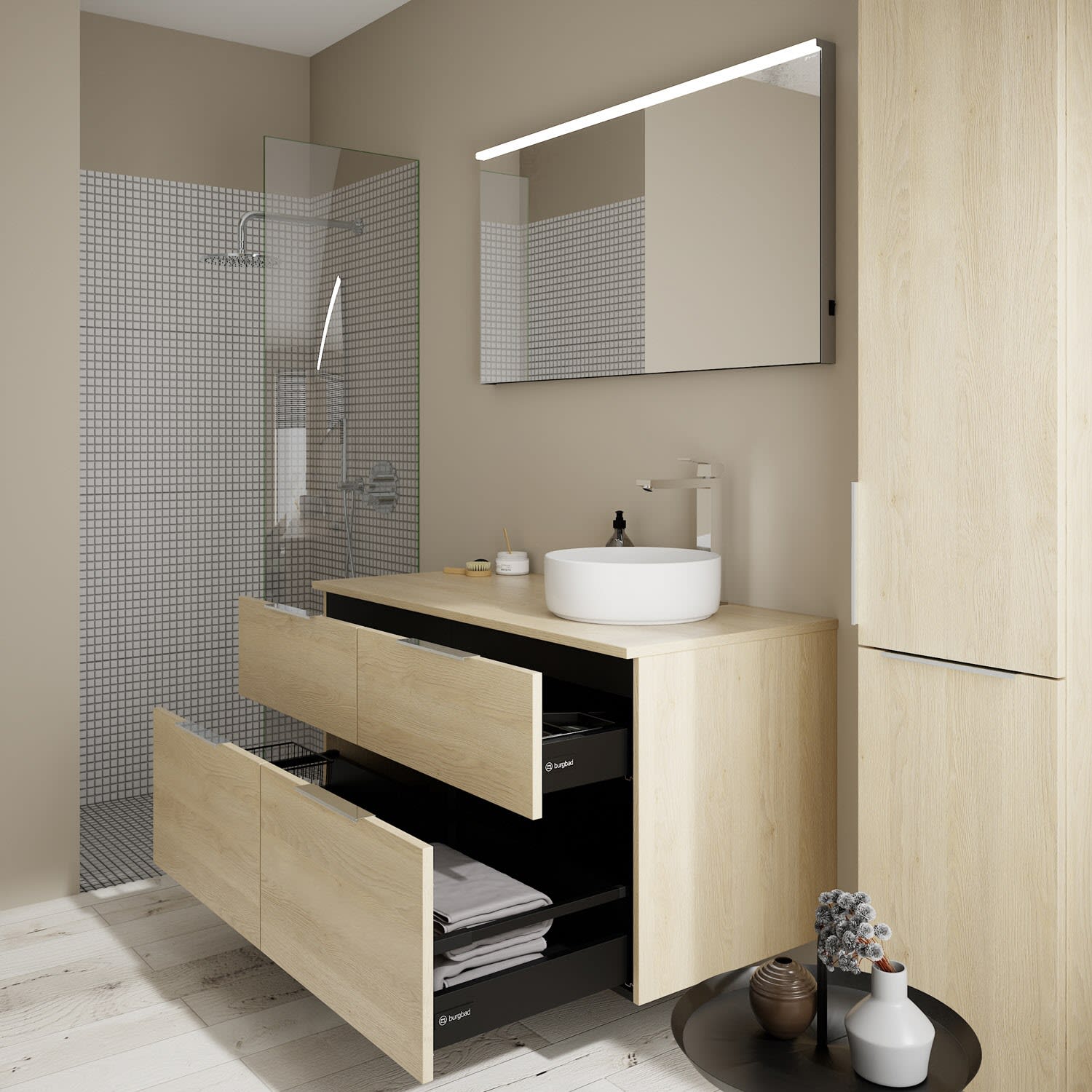 burgbad Eqio Waschtischkombination mit Keramik-Aufsatzwaschtisch 120 cm, rechts, mit Griff G0146