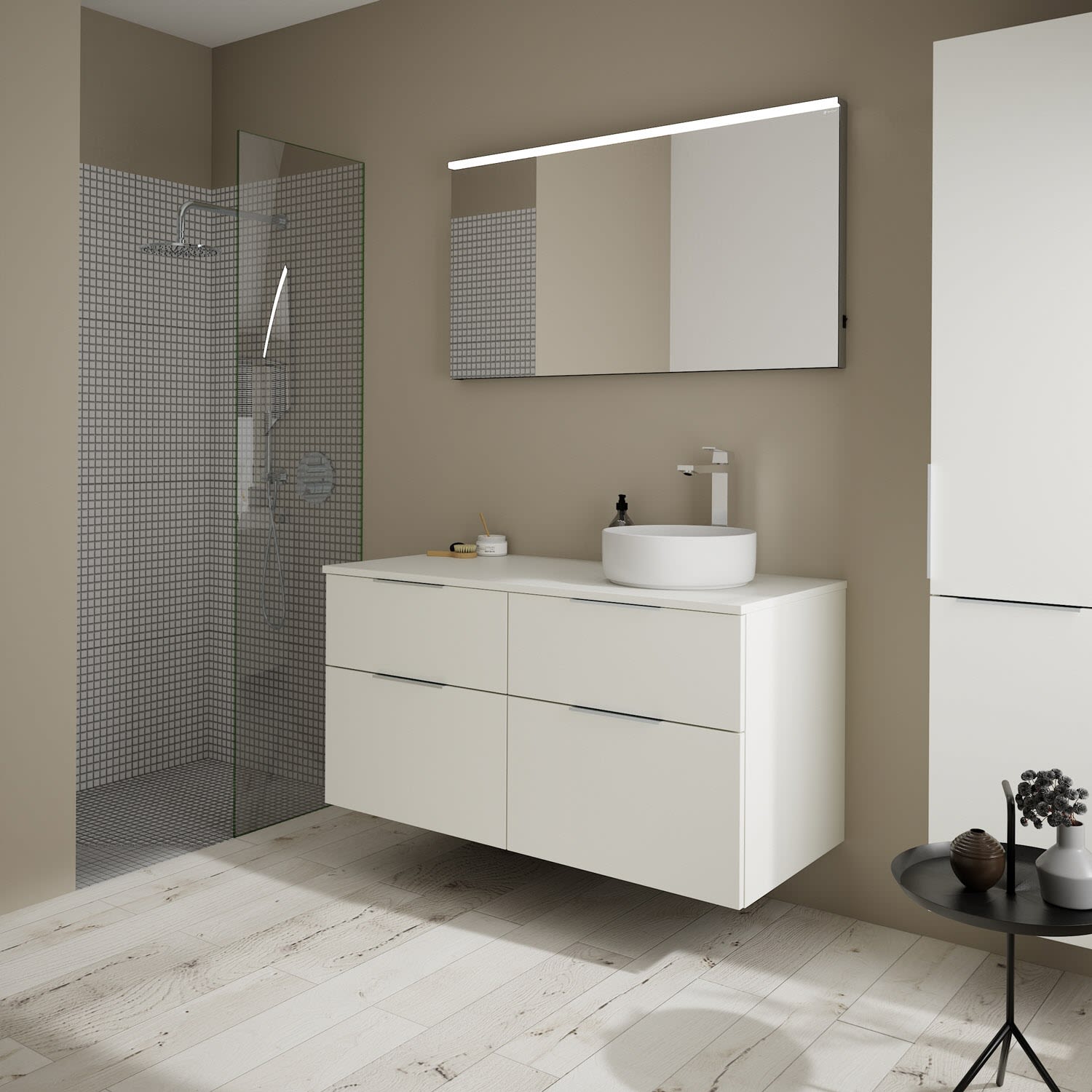 burgbad Eqio Waschtischkombination mit Keramik-Aufsatzwaschtisch 120 cm, rechts, mit Griff G0146