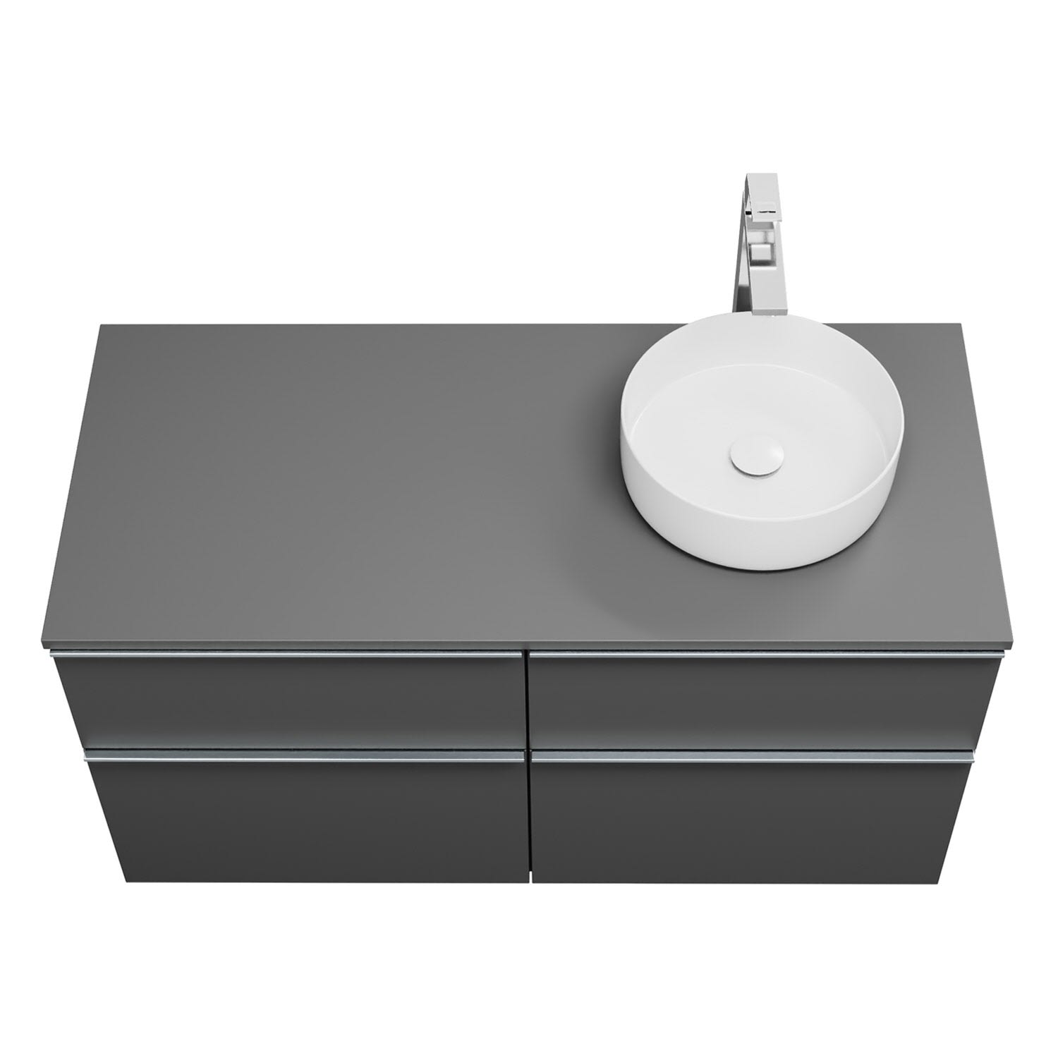 - 2 Schubladen oben, 35 cm tief, mit Siphonausschnitt und Inneneinteilung