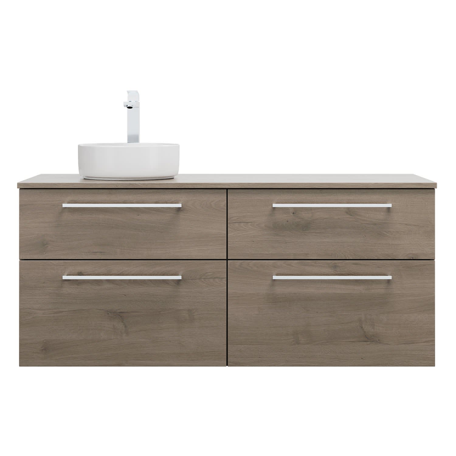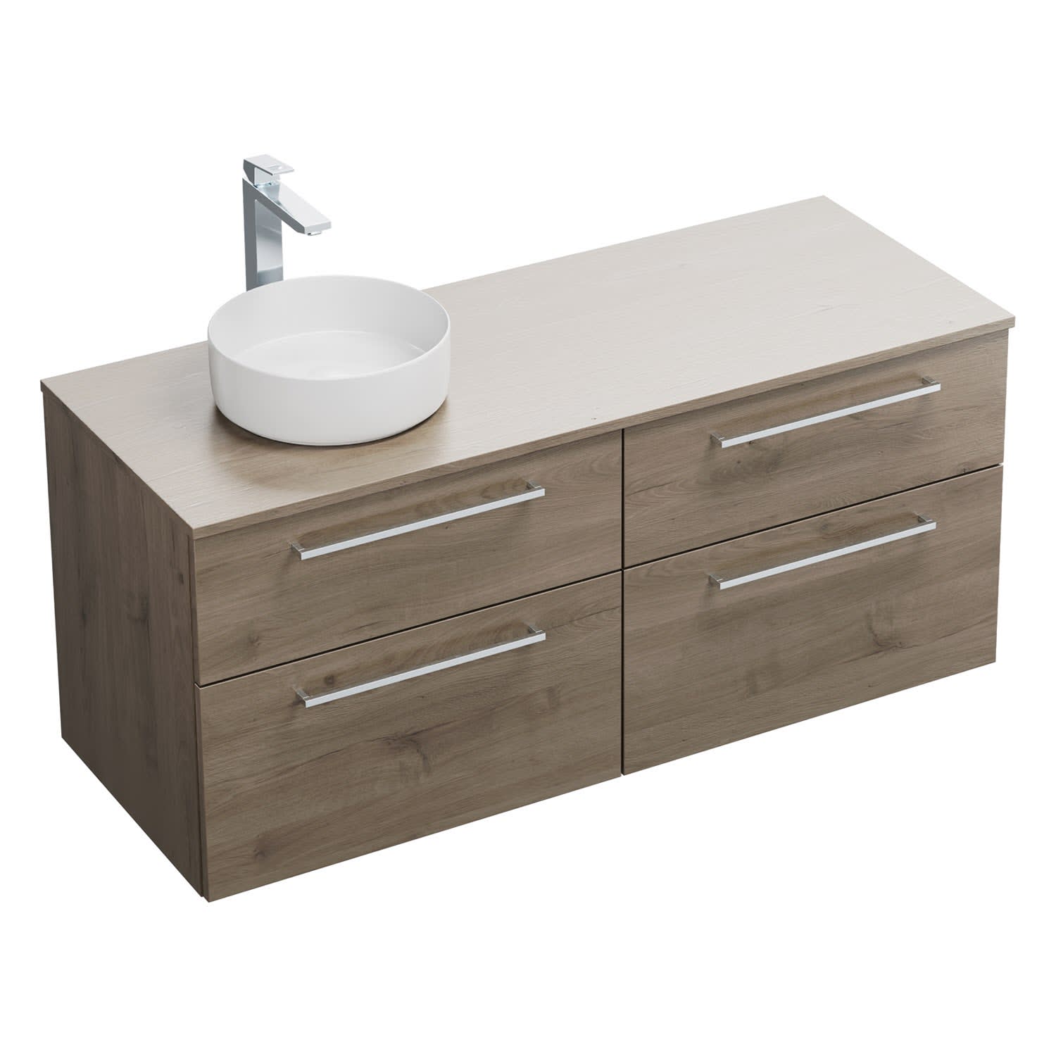 burgbad Eqio Waschtischkombination mit Keramik-Aufsatzwaschtisch 140 cm, links, mit Stangengriff P95