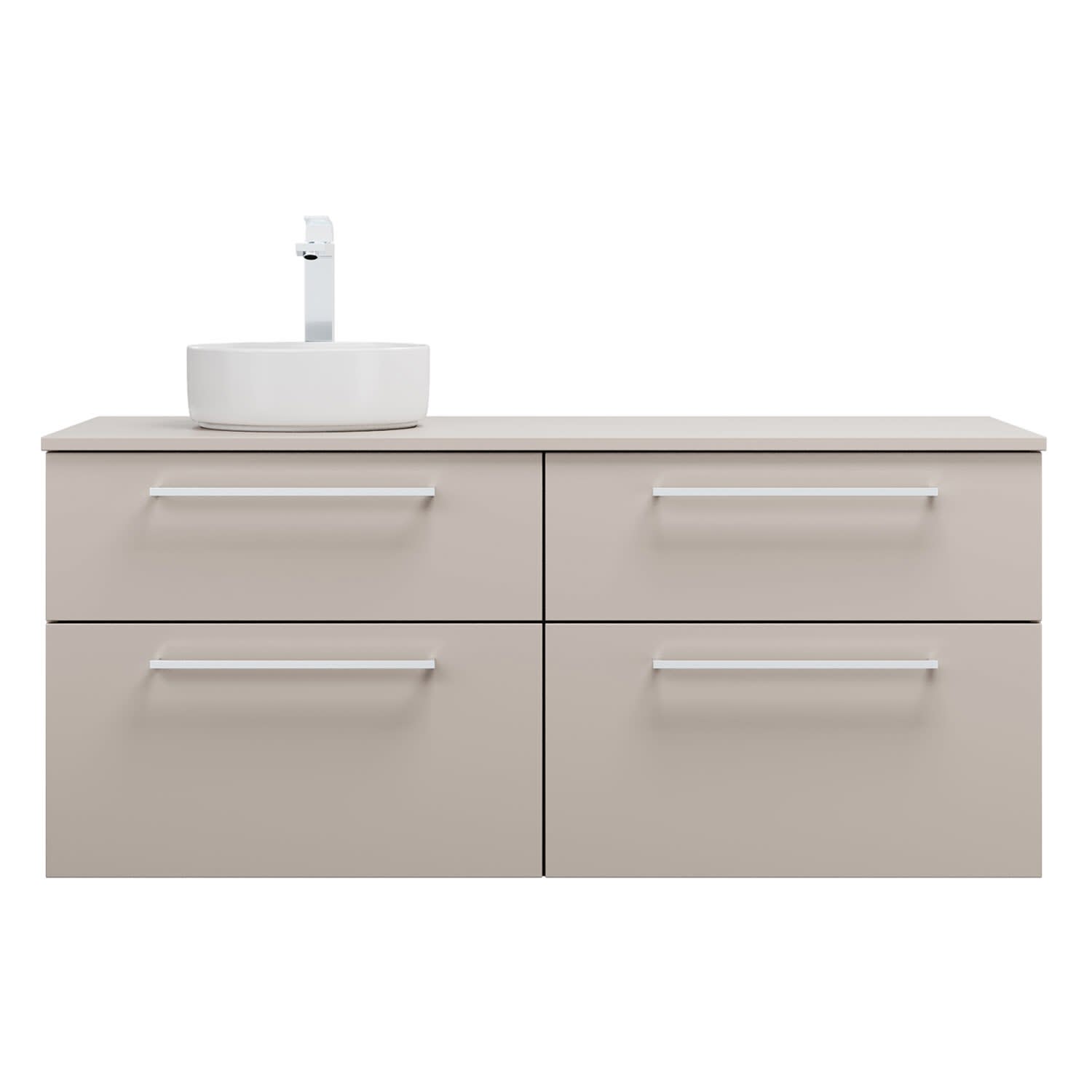 burgbad Eqio Waschtischkombination mit Keramik-Aufsatzwaschtisch 140 cm, links, mit Stangengriff P95