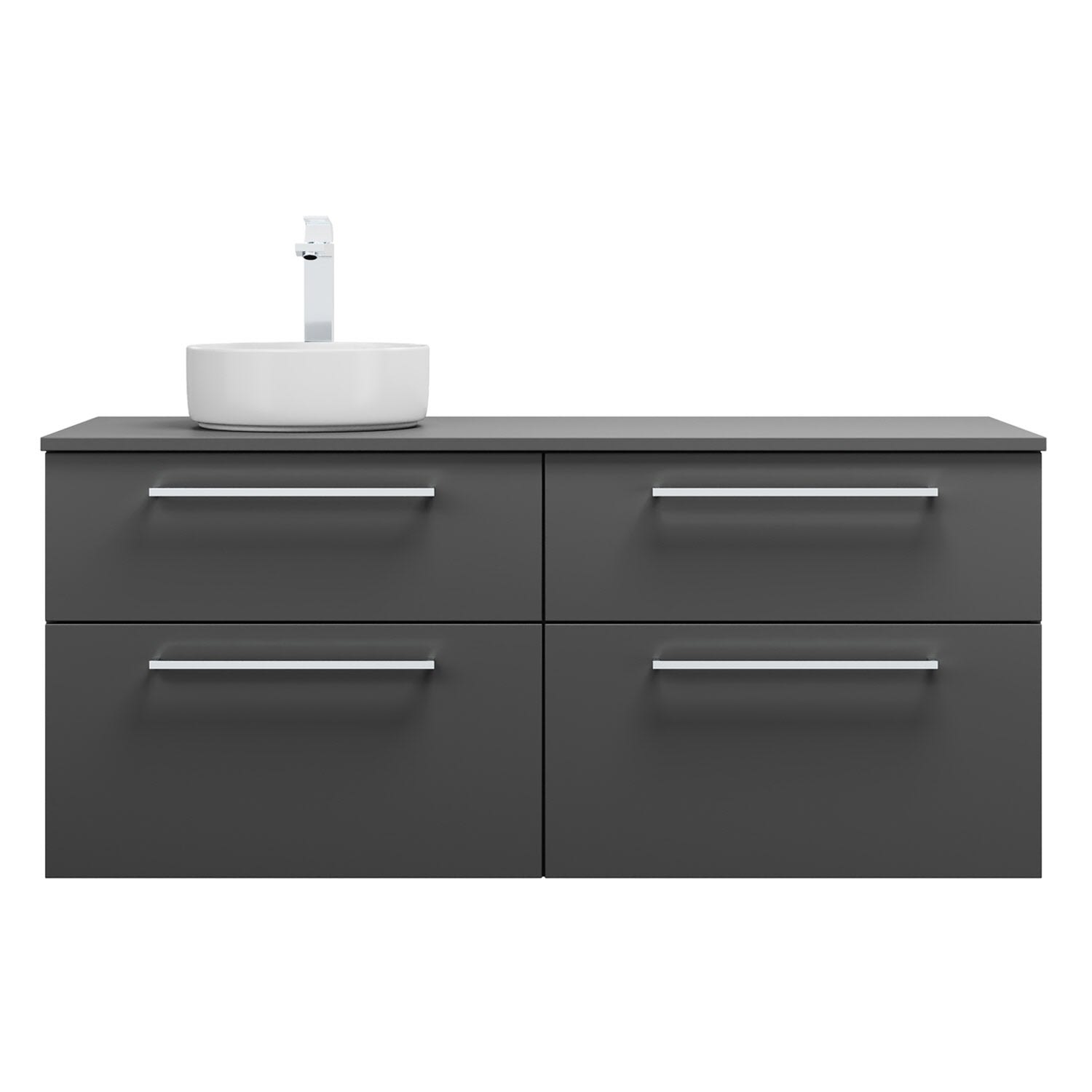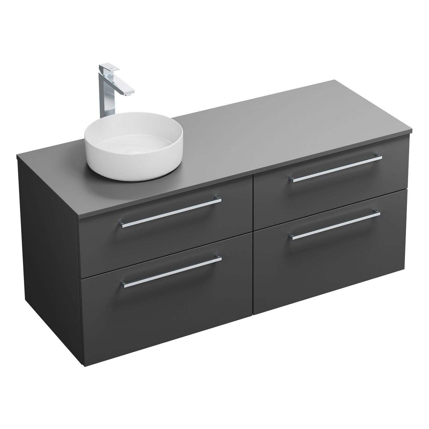 burgbad Eqio Waschtischkombination mit Keramik-Aufsatzwaschtisch 140 cm, links, mit Stangengriff P95