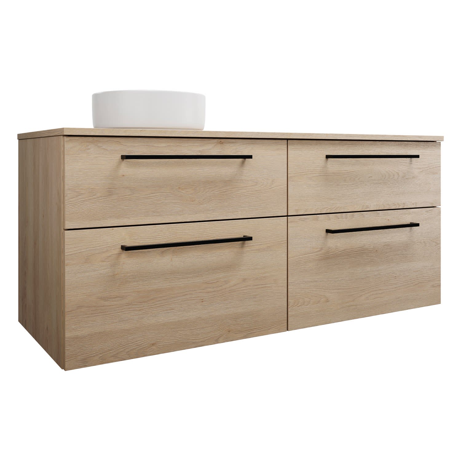 burgbad Eqio Waschtischkombination mit Keramik-Aufsatzwaschtisch 140 cm, links, mit Stangengriff G0234