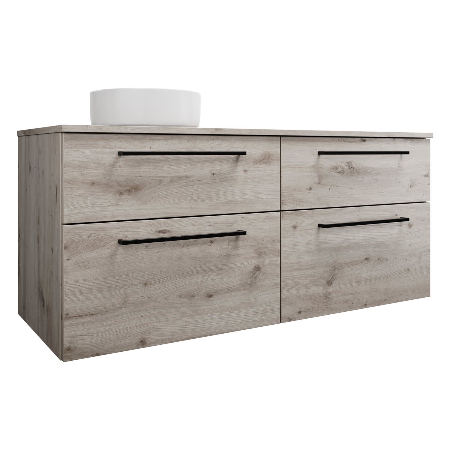 burgbad Eqio Waschtischkombination mit Keramik-Aufsatzwaschtisch 140 cm, links, mit Stangengriff G0234