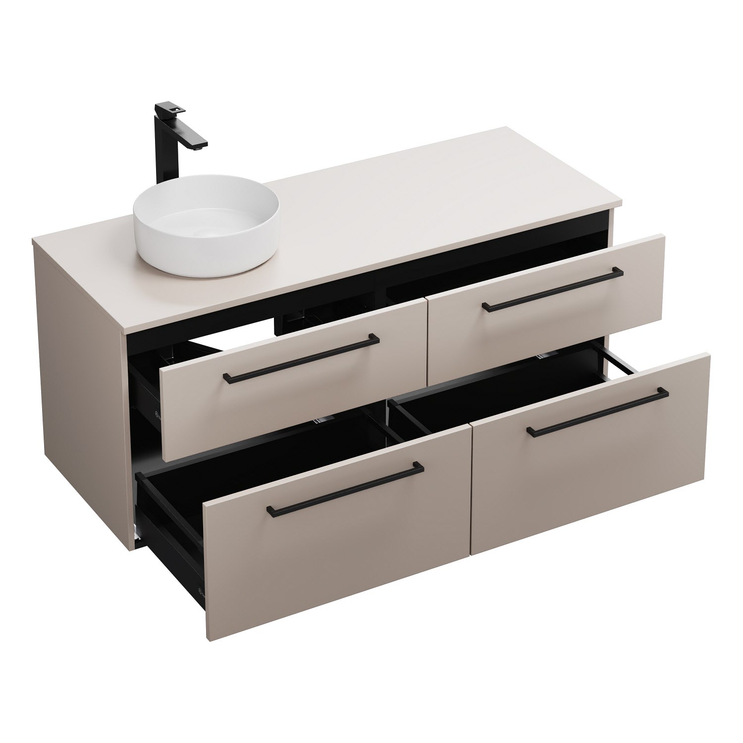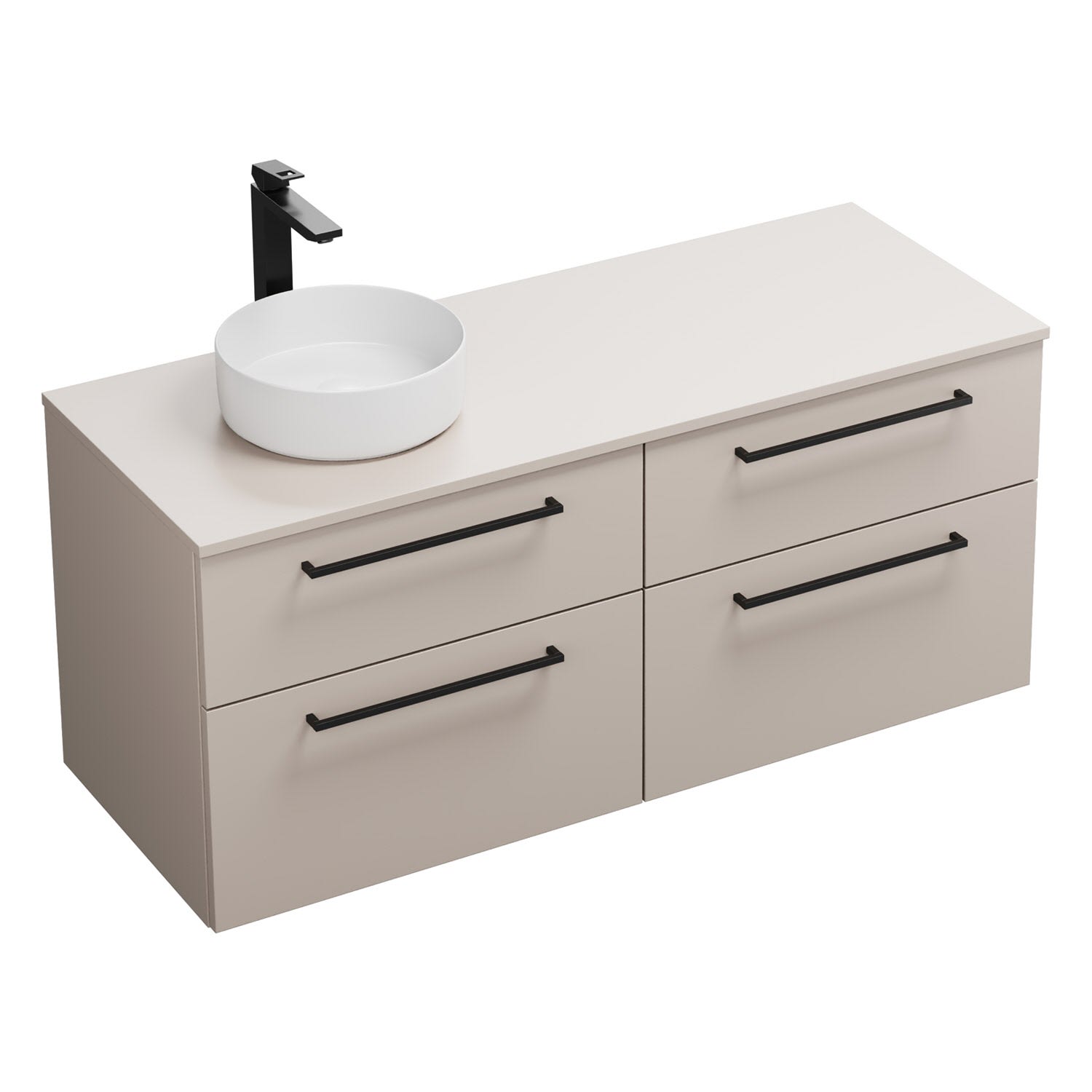 burgbad Eqio Waschtischkombination mit Keramik-Aufsatzwaschtisch 140 cm, links, mit Stangengriff G0234
