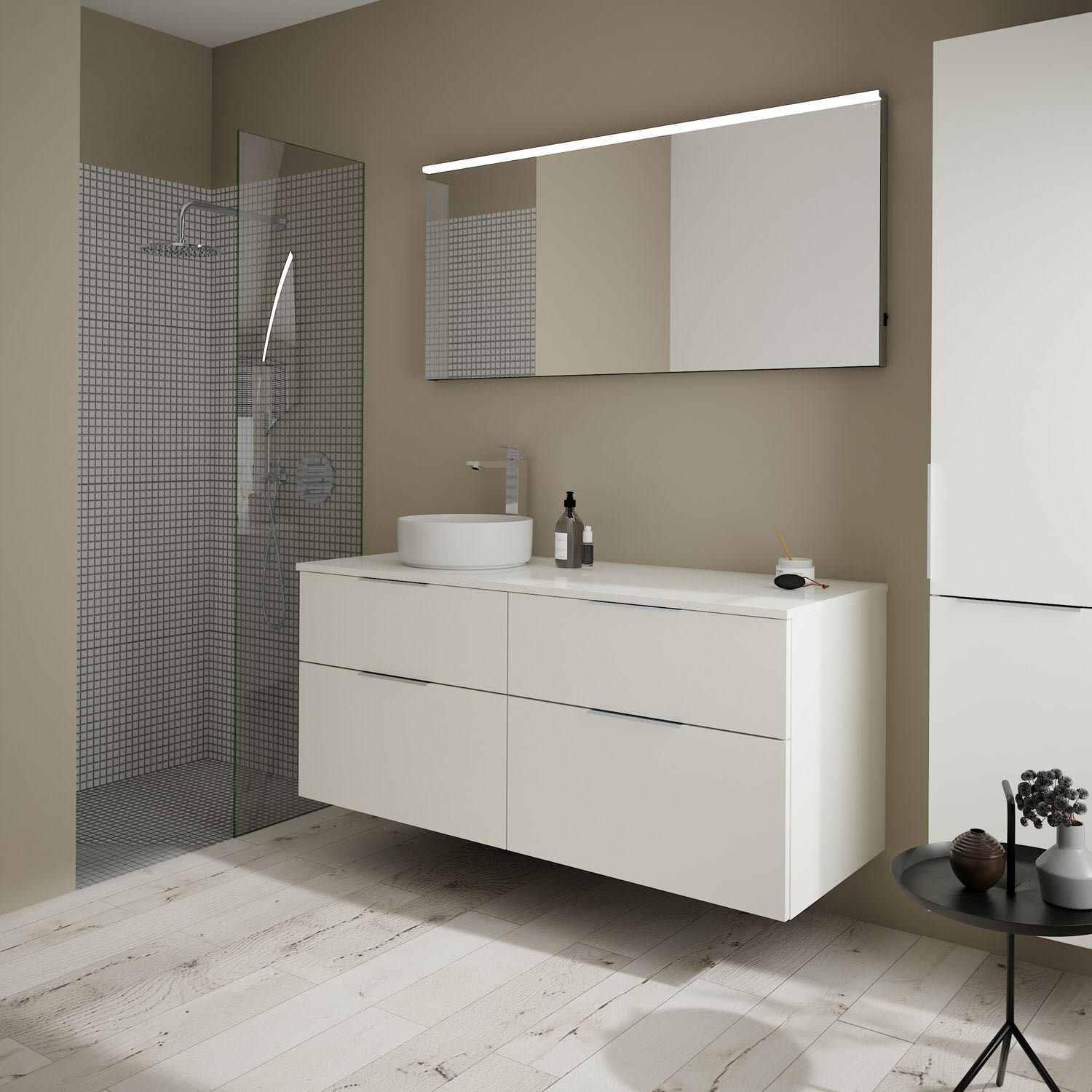burgbad Eqio Waschtischkombination mit Keramik-Aufsatzwaschtisch 140 cm, links, mit Griff G0146