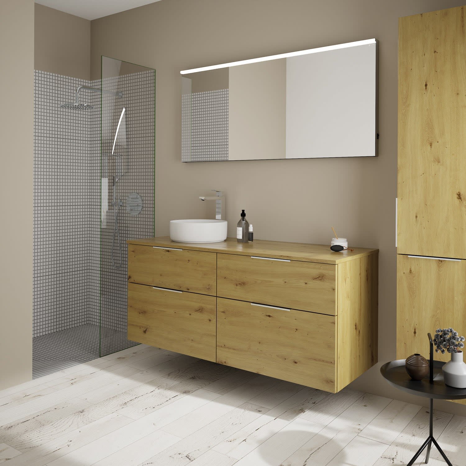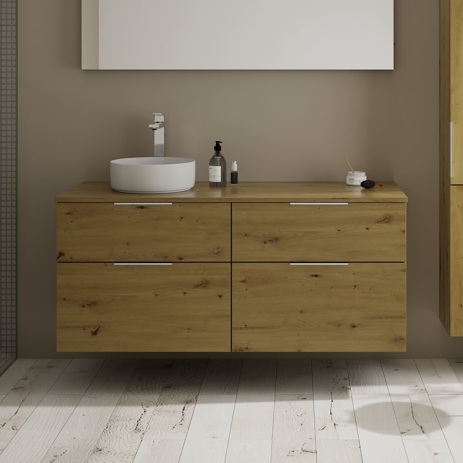 burgbad Eqio Waschtischkombination mit Keramik-Aufsatzwaschtisch 140 cm, links, mit Griff G0146
