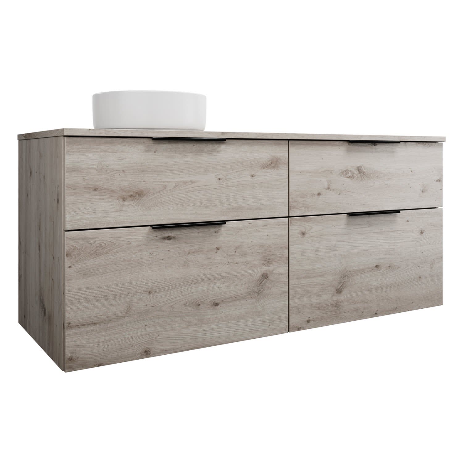 burgbad Eqio Waschtischkombination mit Keramik-Aufsatzwaschtisch 140 cm, links, mit Griff G0200