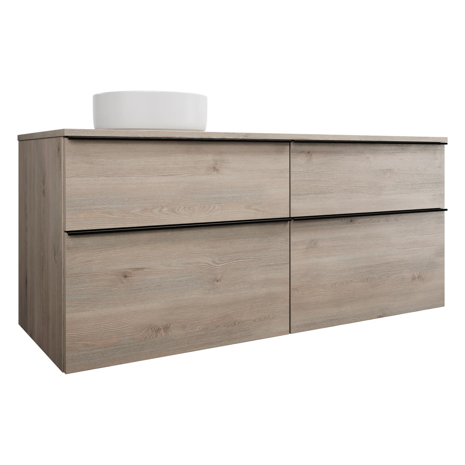 burgbad Eqio Waschtischkombination mit Keramik-Aufsatzwaschtisch 140 cm, links, mit Griffleiste G0252