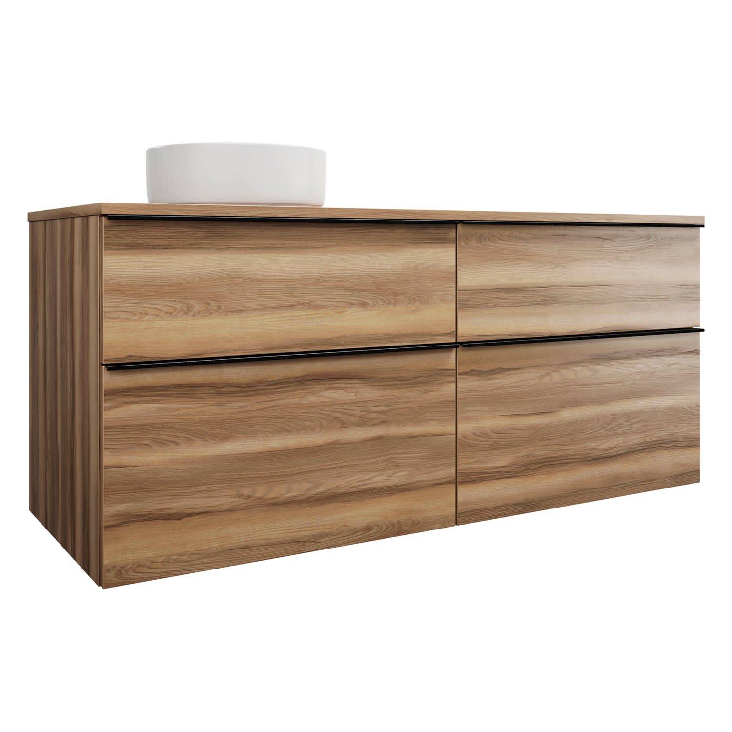 burgbad Eqio Waschtischkombination mit Keramik-Aufsatzwaschtisch 140 cm, links, mit Griffleiste G0252