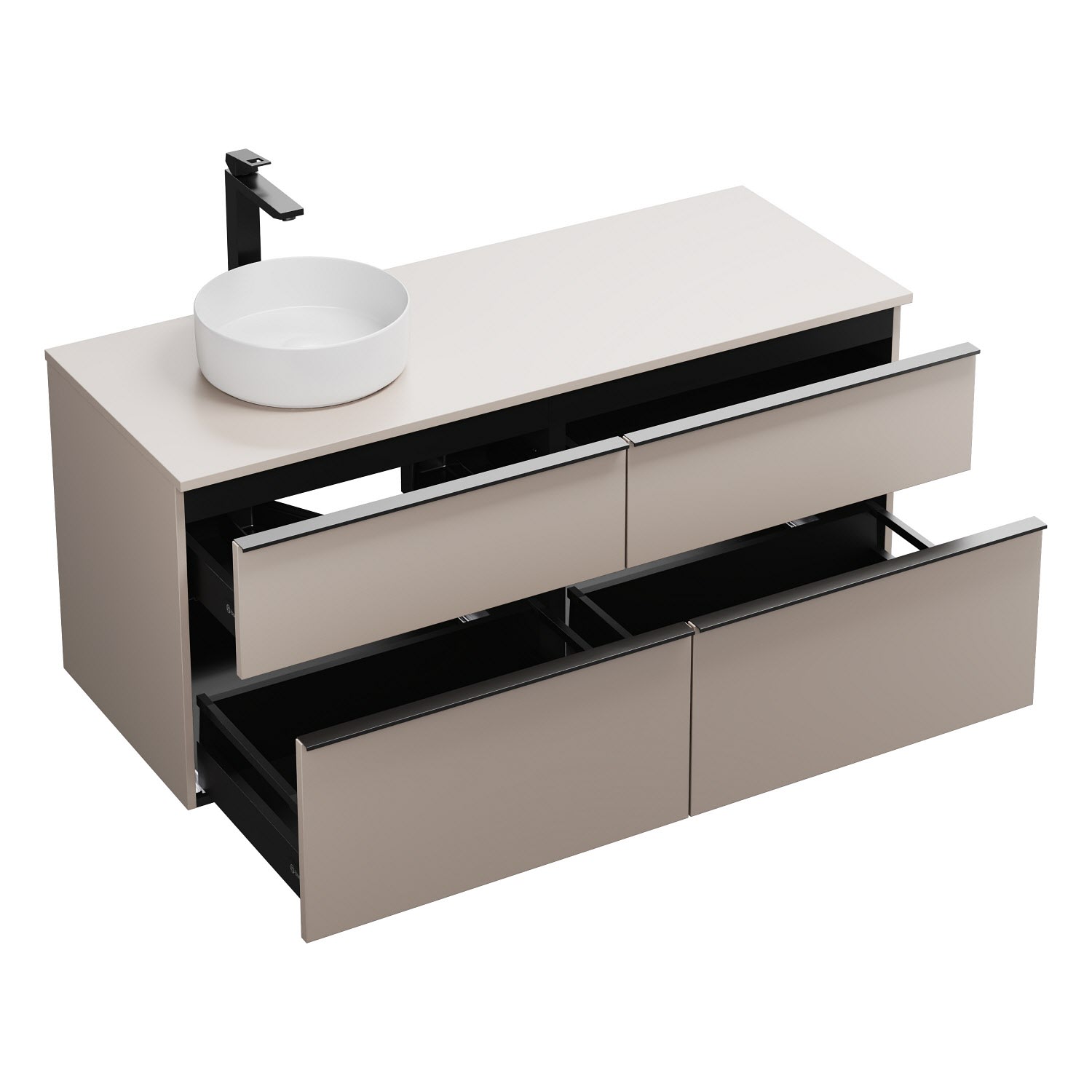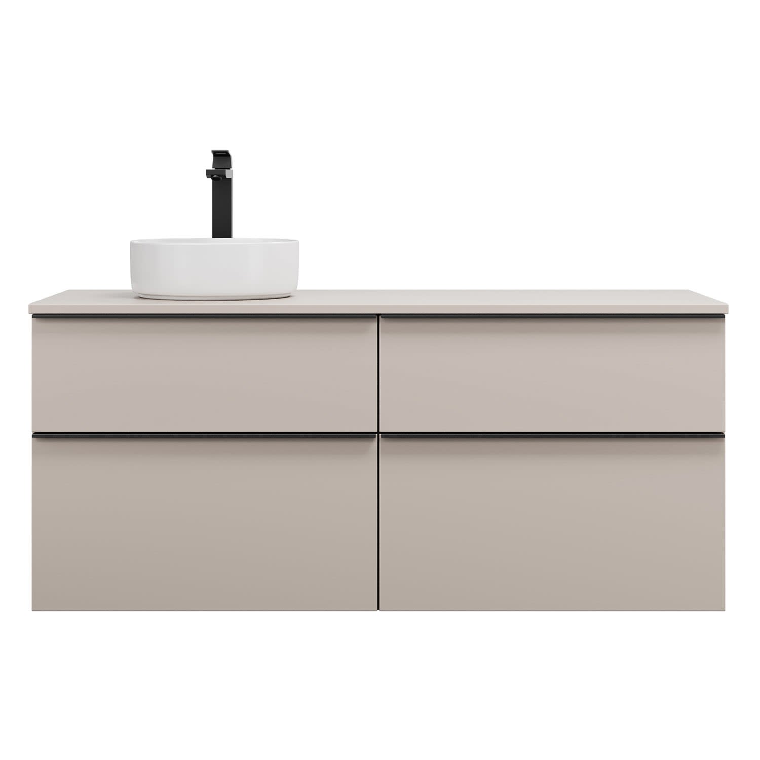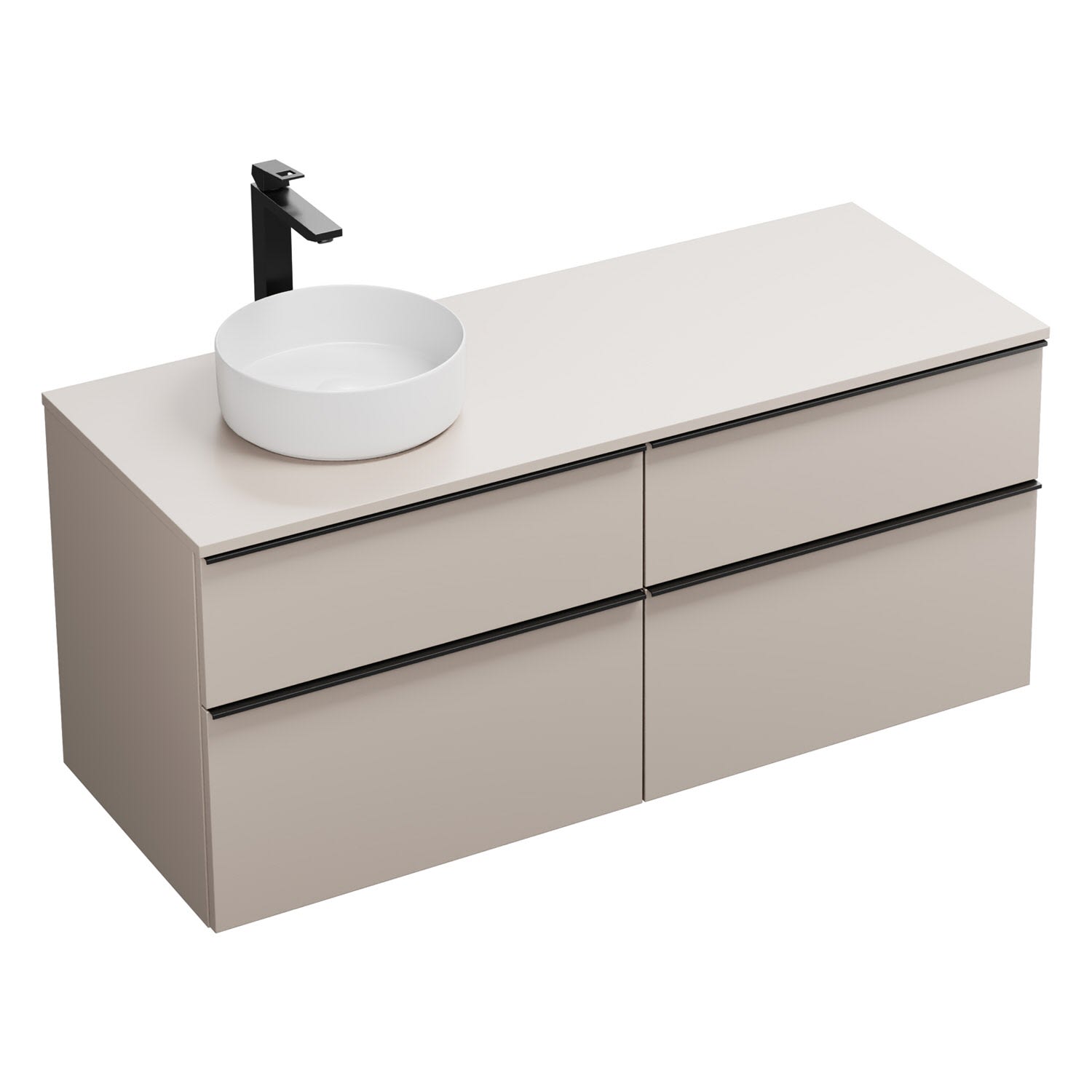burgbad Eqio Waschtischkombination mit Keramik-Aufsatzwaschtisch 140 cm, links, mit Griffleiste G0252