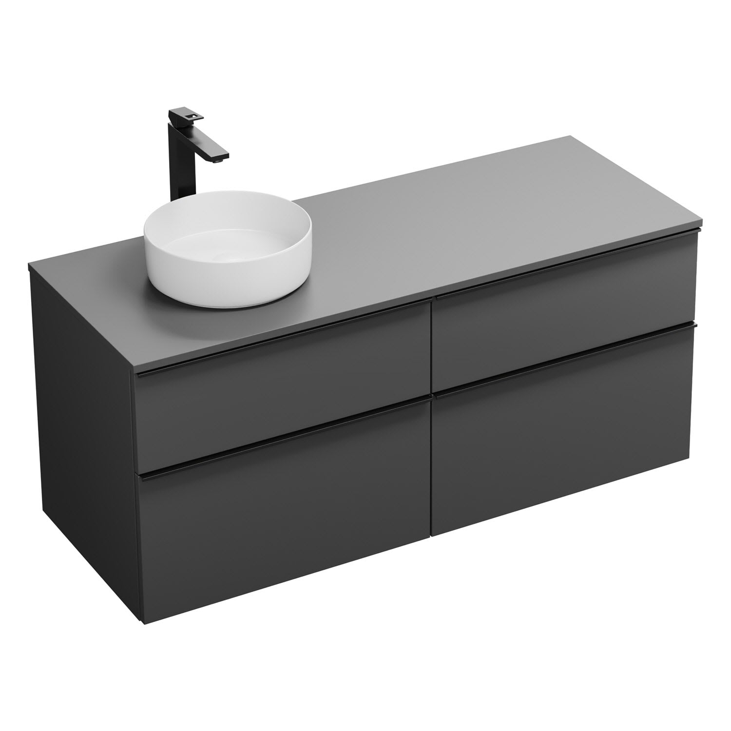 burgbad Eqio Waschtischkombination mit Keramik-Aufsatzwaschtisch 140 cm, links, mit Griffleiste G0252