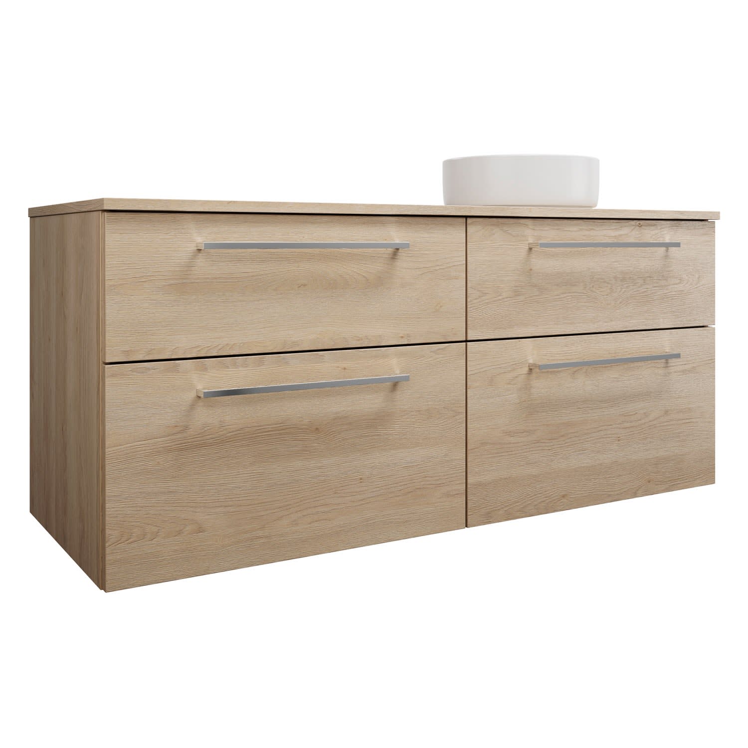 burgbad Eqio Waschtischkombination mit Keramik-Aufsatzwaschtisch 140 cm, rechts, mit Stangengriff P95
