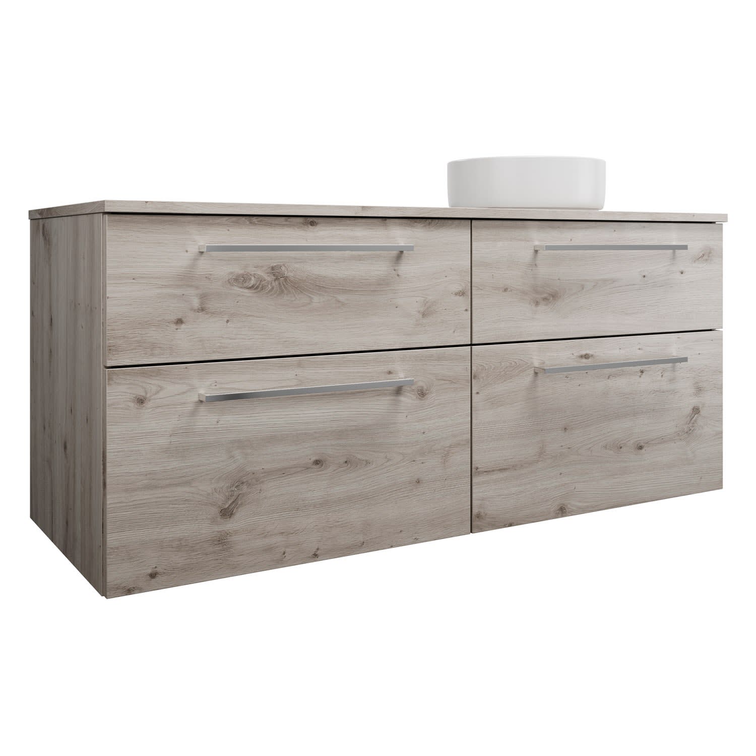 burgbad Eqio Waschtischkombination mit Keramik-Aufsatzwaschtisch 140 cm, rechts, mit Stangengriff P95