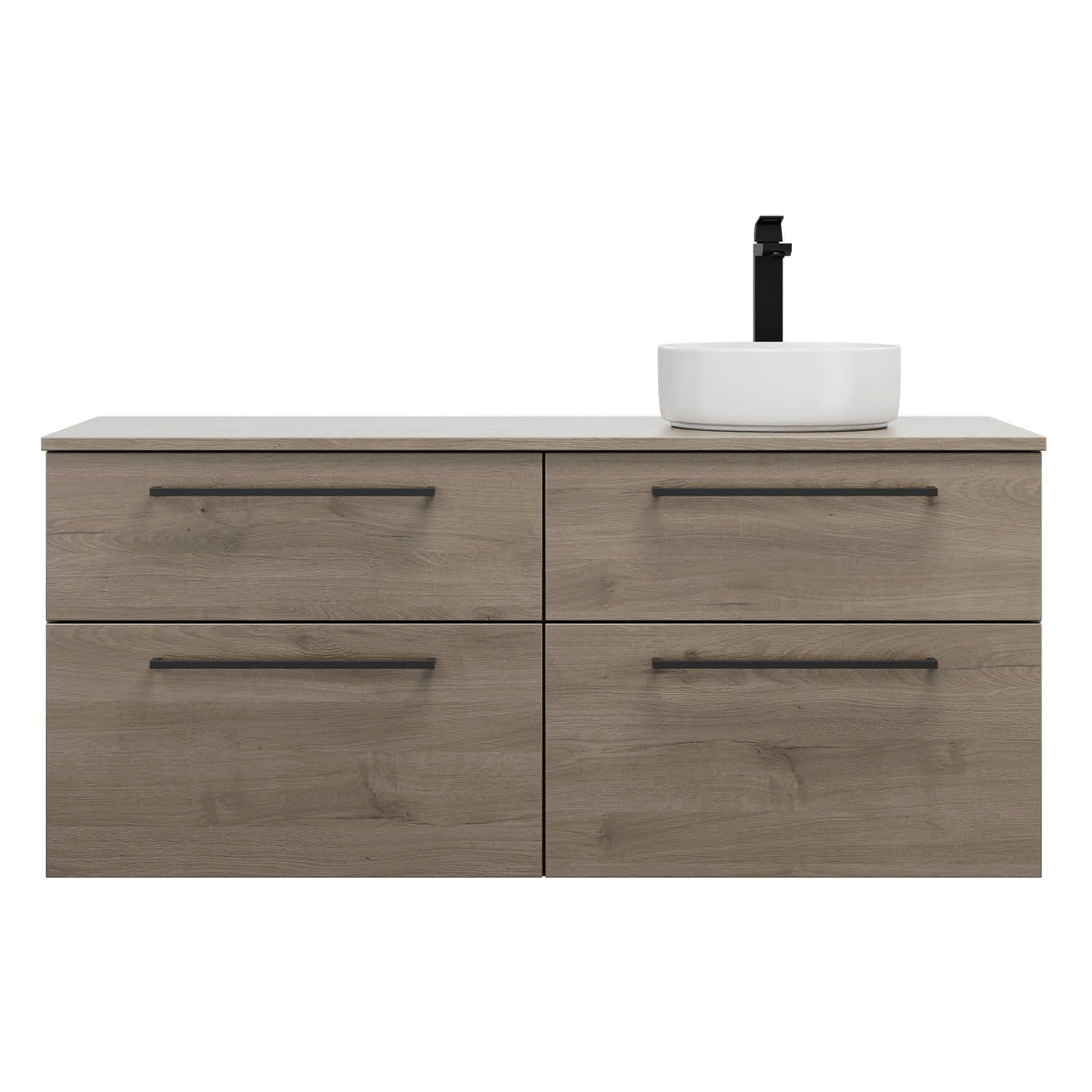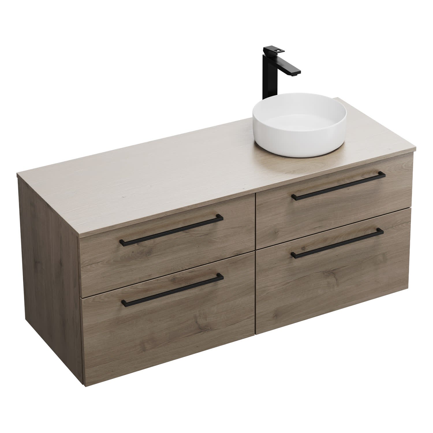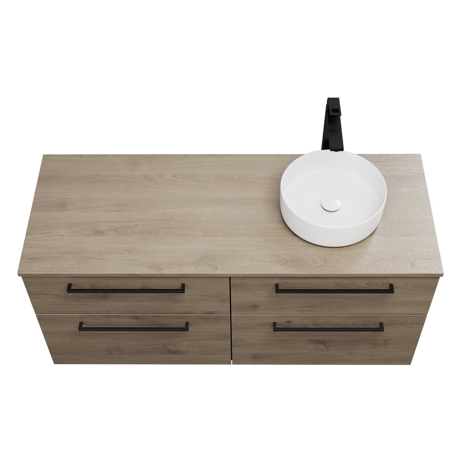burgbad Eqio Waschtischkombination mit Keramik-Aufsatzwaschtisch 140 cm, rechts, mit Stangengriff G0234