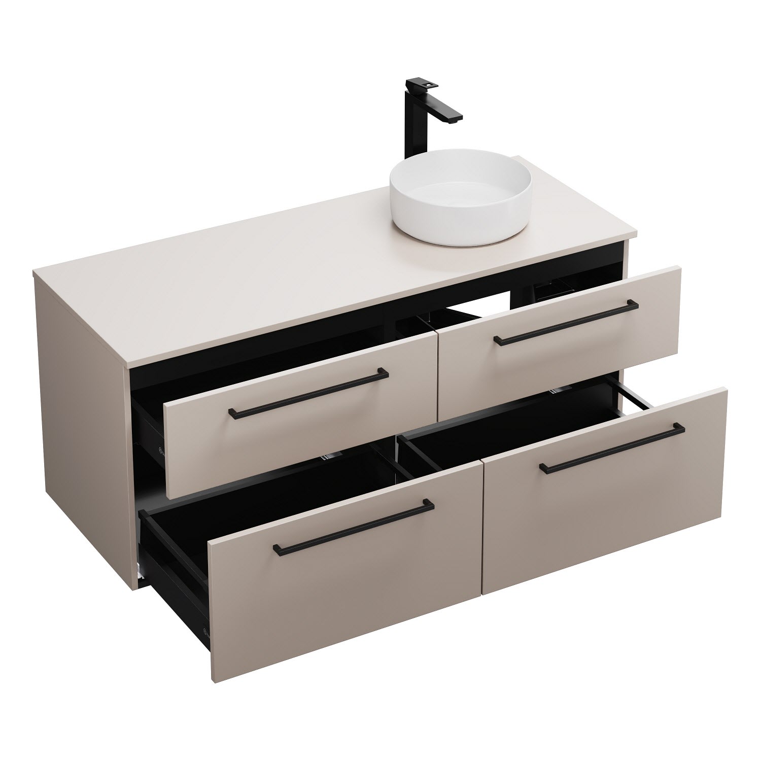 burgbad Eqio Waschtischkombination mit Keramik-Aufsatzwaschtisch 140 cm, rechts, mit Stangengriff G0234