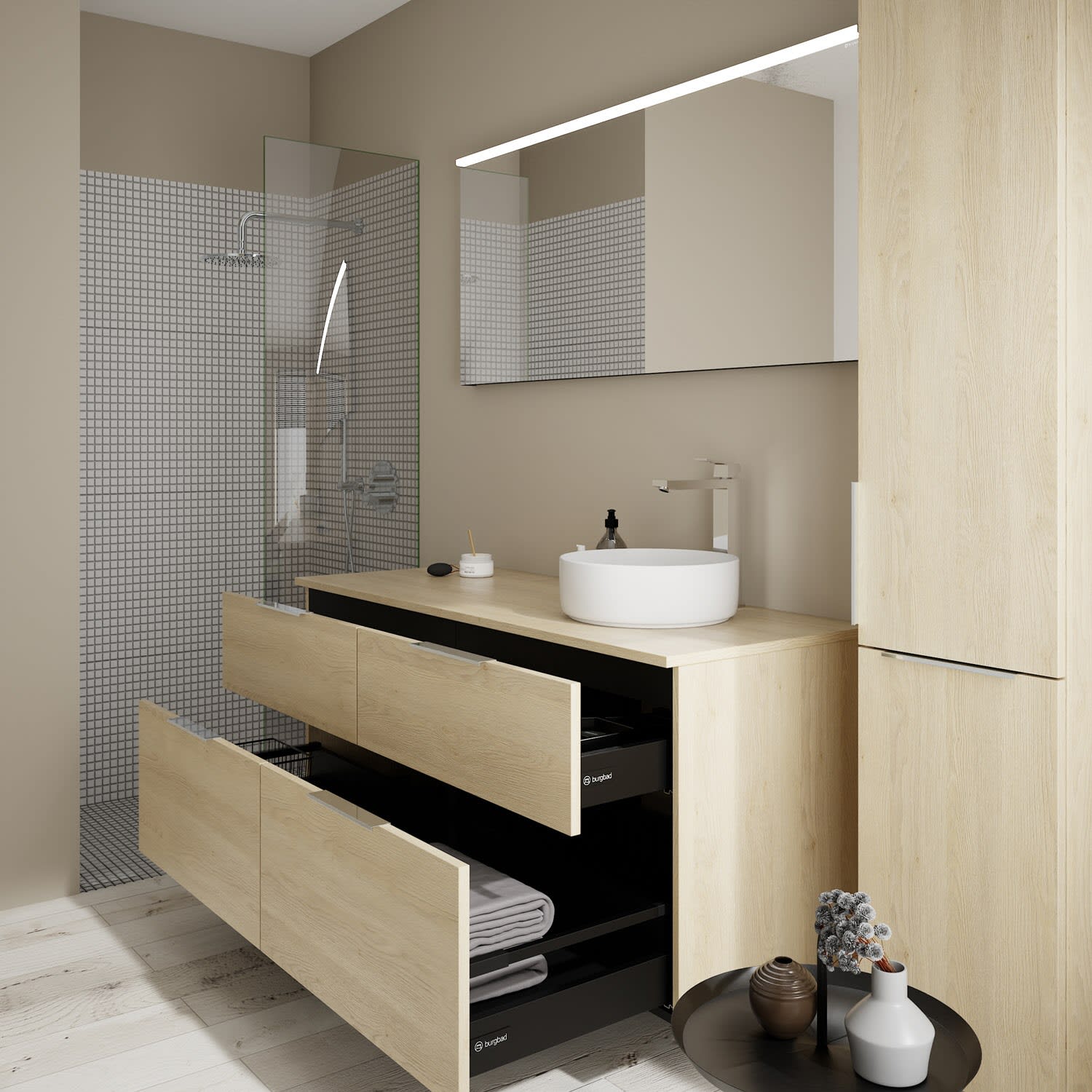 burgbad Eqio Waschtischkombination mit Keramik-Aufsatzwaschtisch 140 cm, rechts, mit Griff G0146
