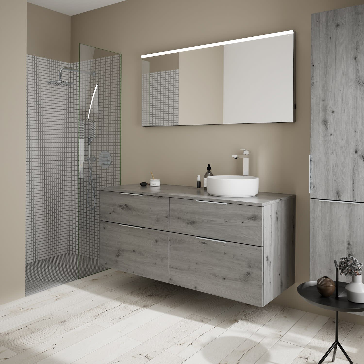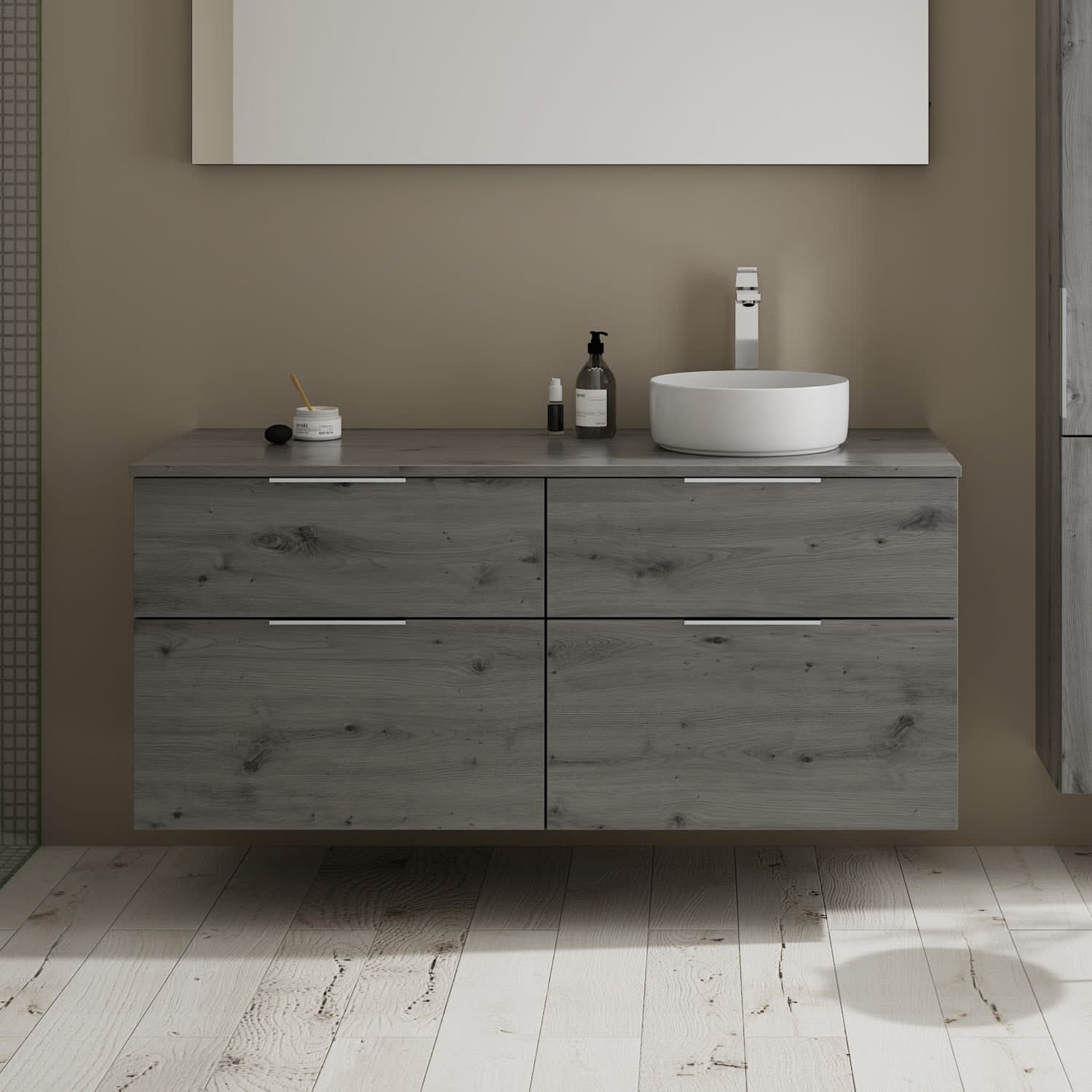 burgbad Eqio Waschtischkombination mit Keramik-Aufsatzwaschtisch 140 cm, rechts, mit Griff G0146