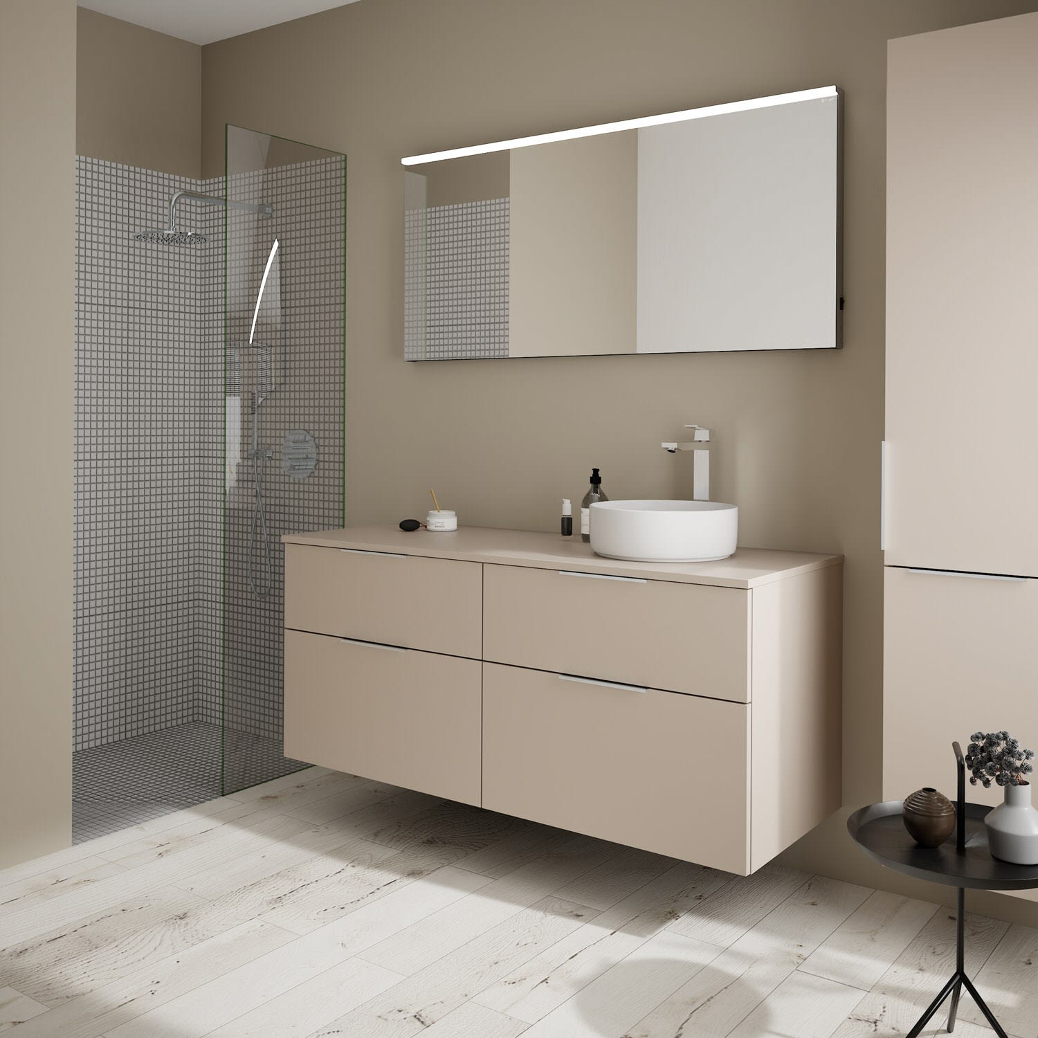 burgbad Eqio Waschtischkombination mit Keramik-Aufsatzwaschtisch 140 cm, rechts, mit Griff G0146