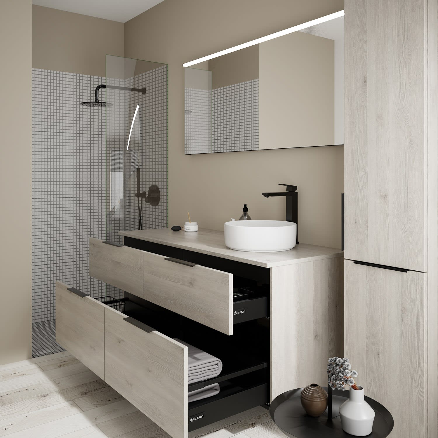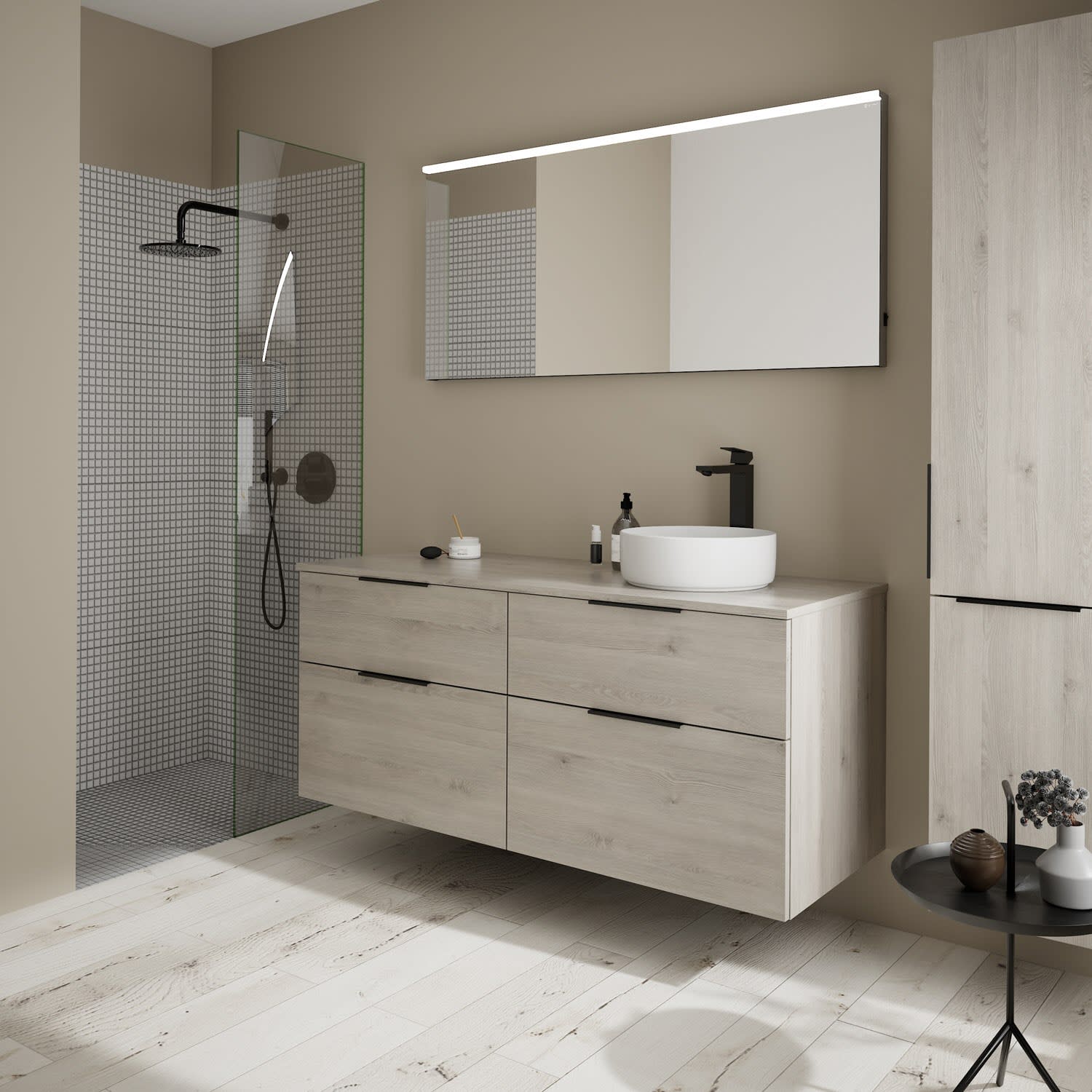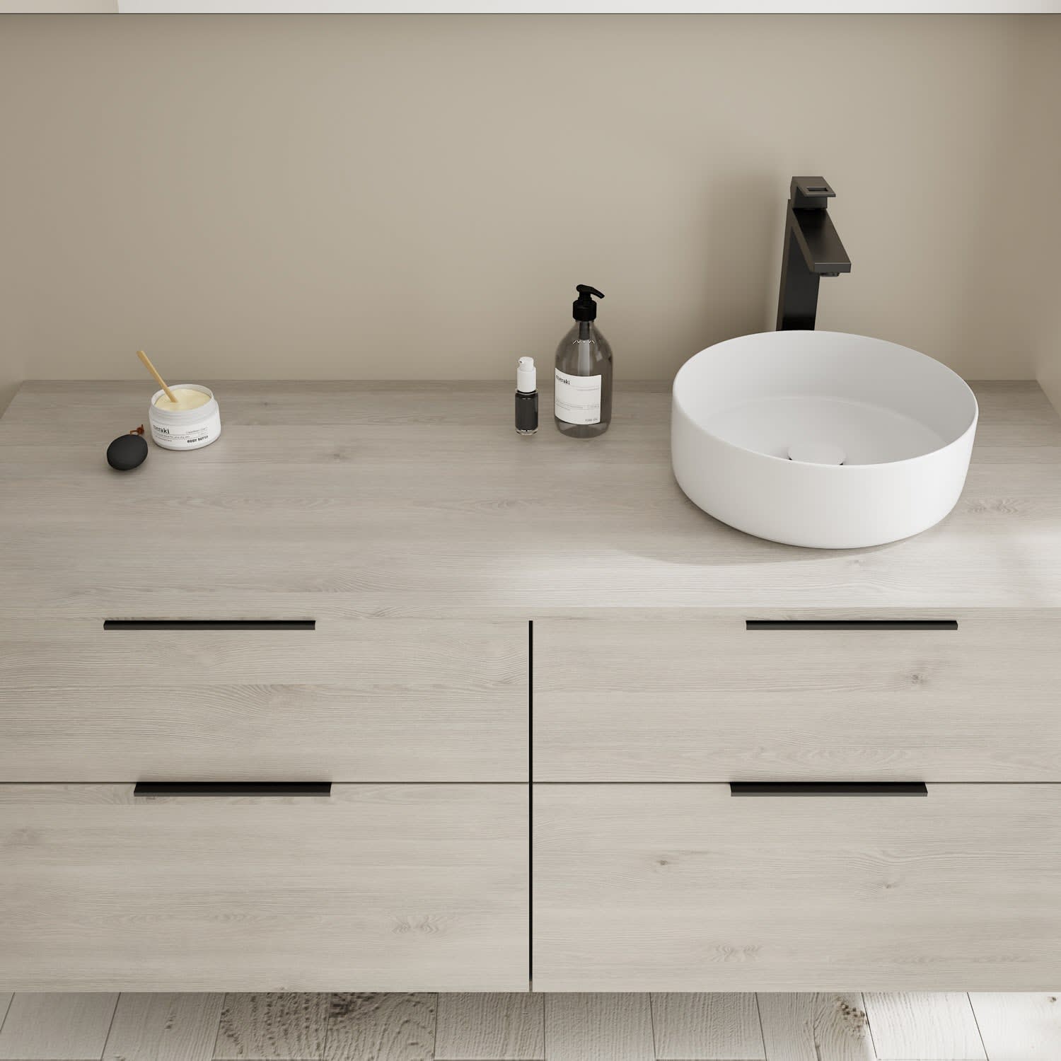 burgbad Eqio Waschtischkombination mit Keramik-Aufsatzwaschtisch 140 cm, rechts, mit Griff G0200