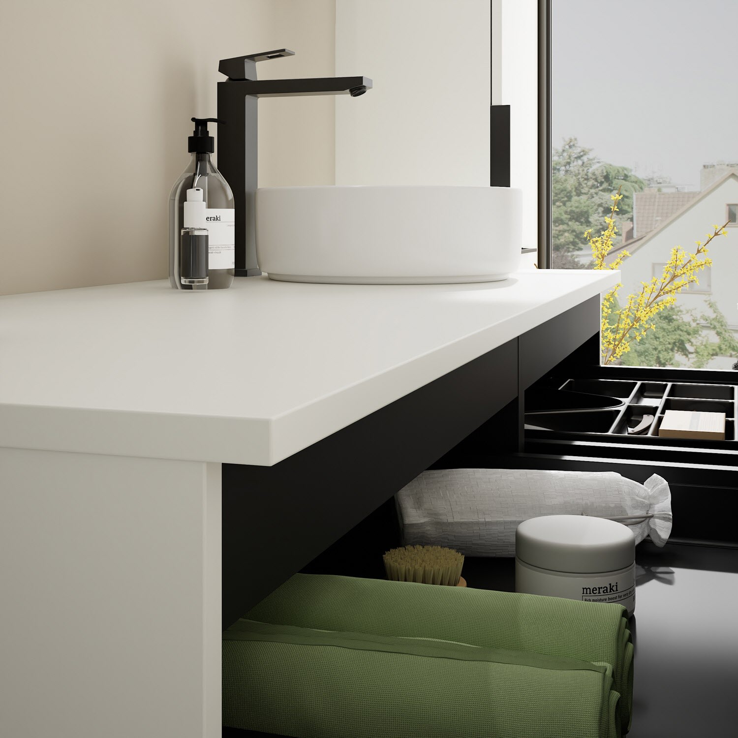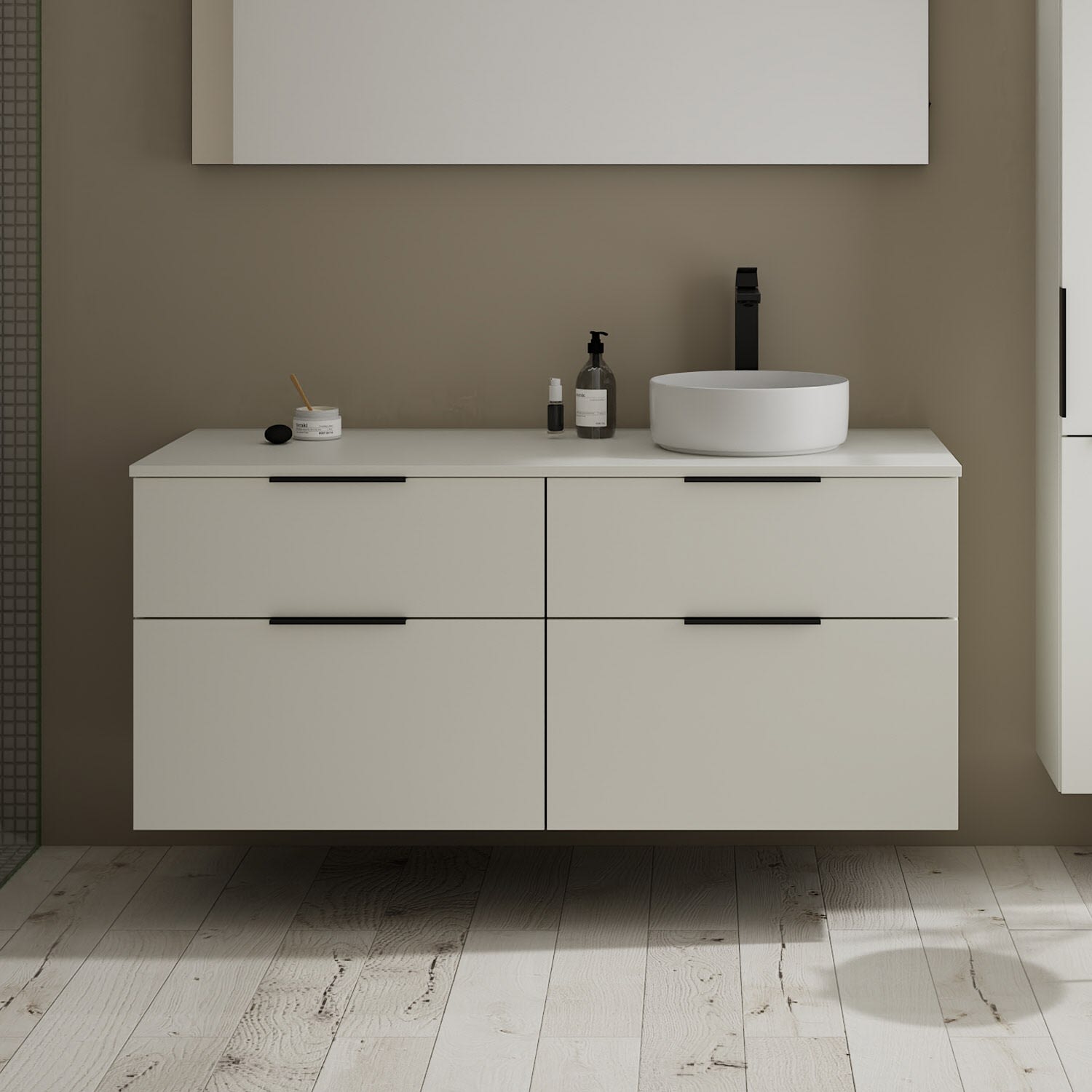 burgbad Eqio Waschtischkombination mit Keramik-Aufsatzwaschtisch 140 cm, rechts, mit Griff G0200