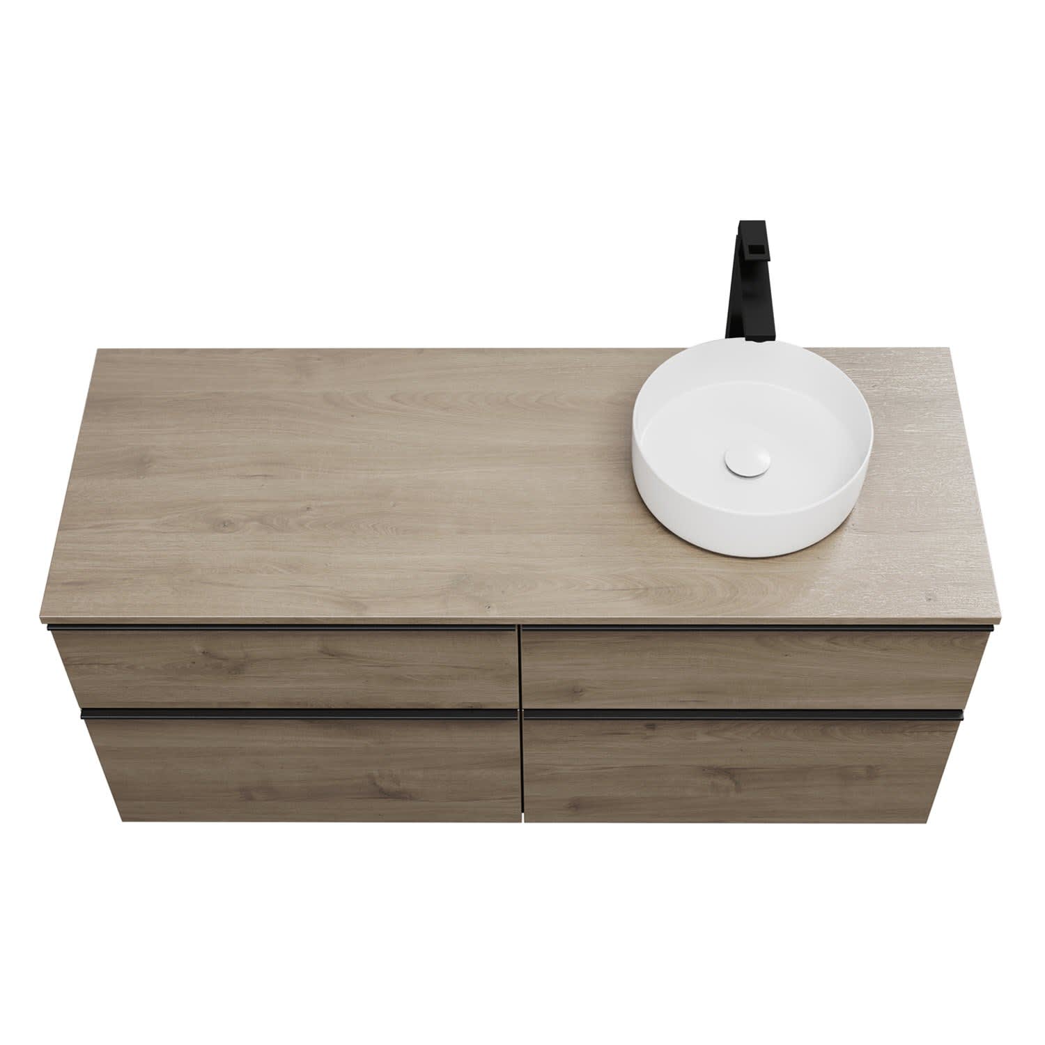 burgbad Eqio Waschtischkombination mit Keramik-Aufsatzwaschtisch 140 cm, rechts, mit Griffleiste G0252