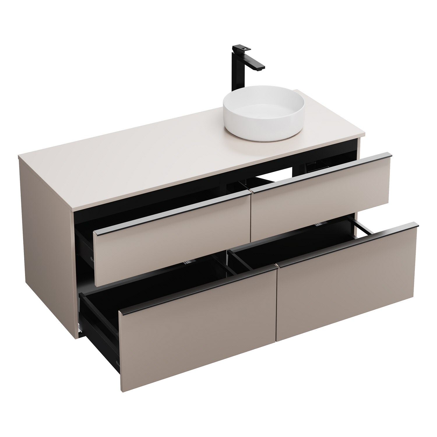 burgbad Eqio Waschtischkombination mit Keramik-Aufsatzwaschtisch 140 cm, rechts, mit Griffleiste G0252