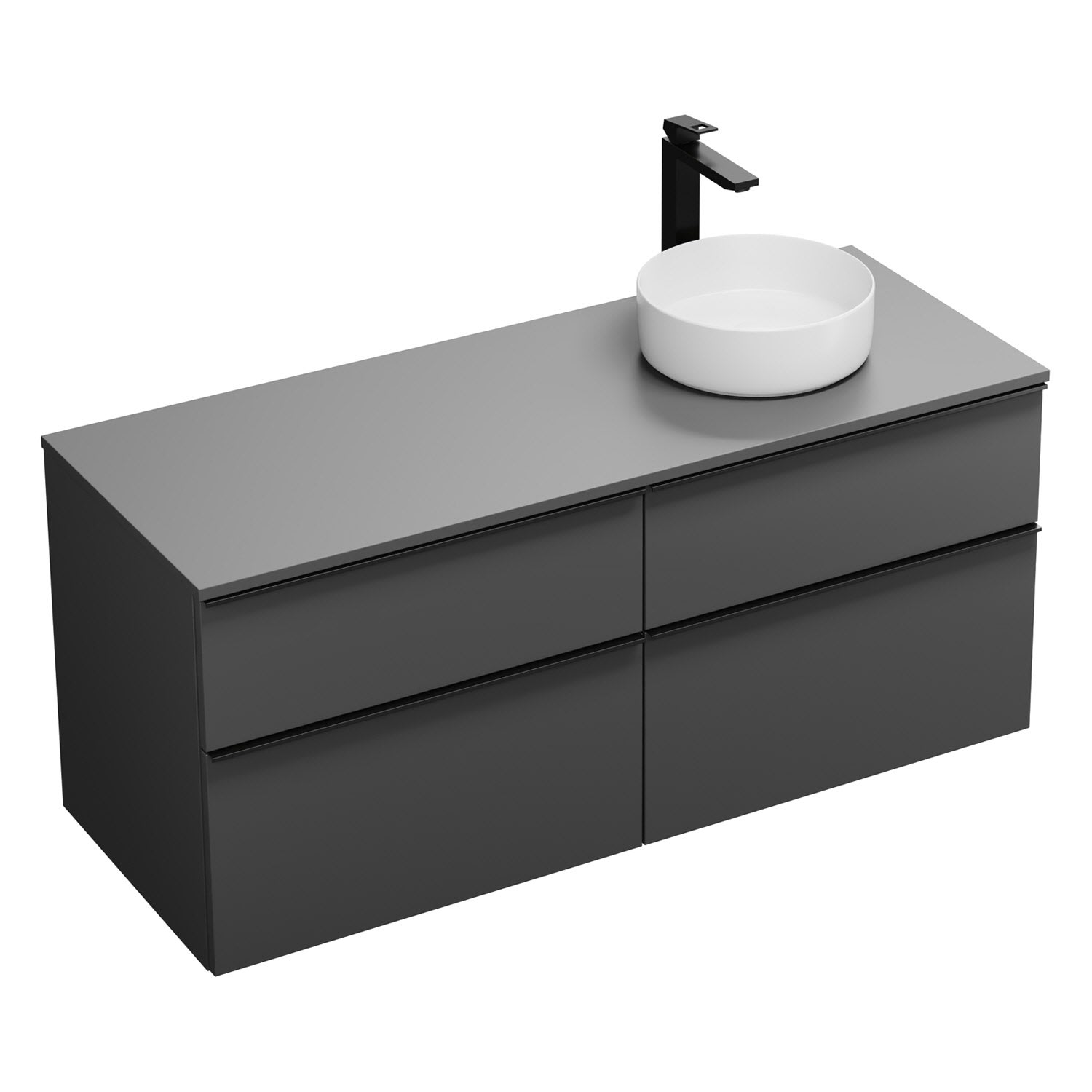 burgbad Eqio Waschtischkombination mit Keramik-Aufsatzwaschtisch 140 cm, rechts, mit Griffleiste G0252