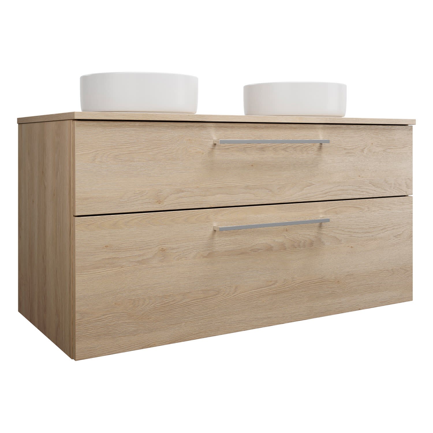 burgbad Eqio Waschtischkombination mit Keramik-Aufsatzwaschtisch 120 cm, links und rechts, mit Stangengriff P95