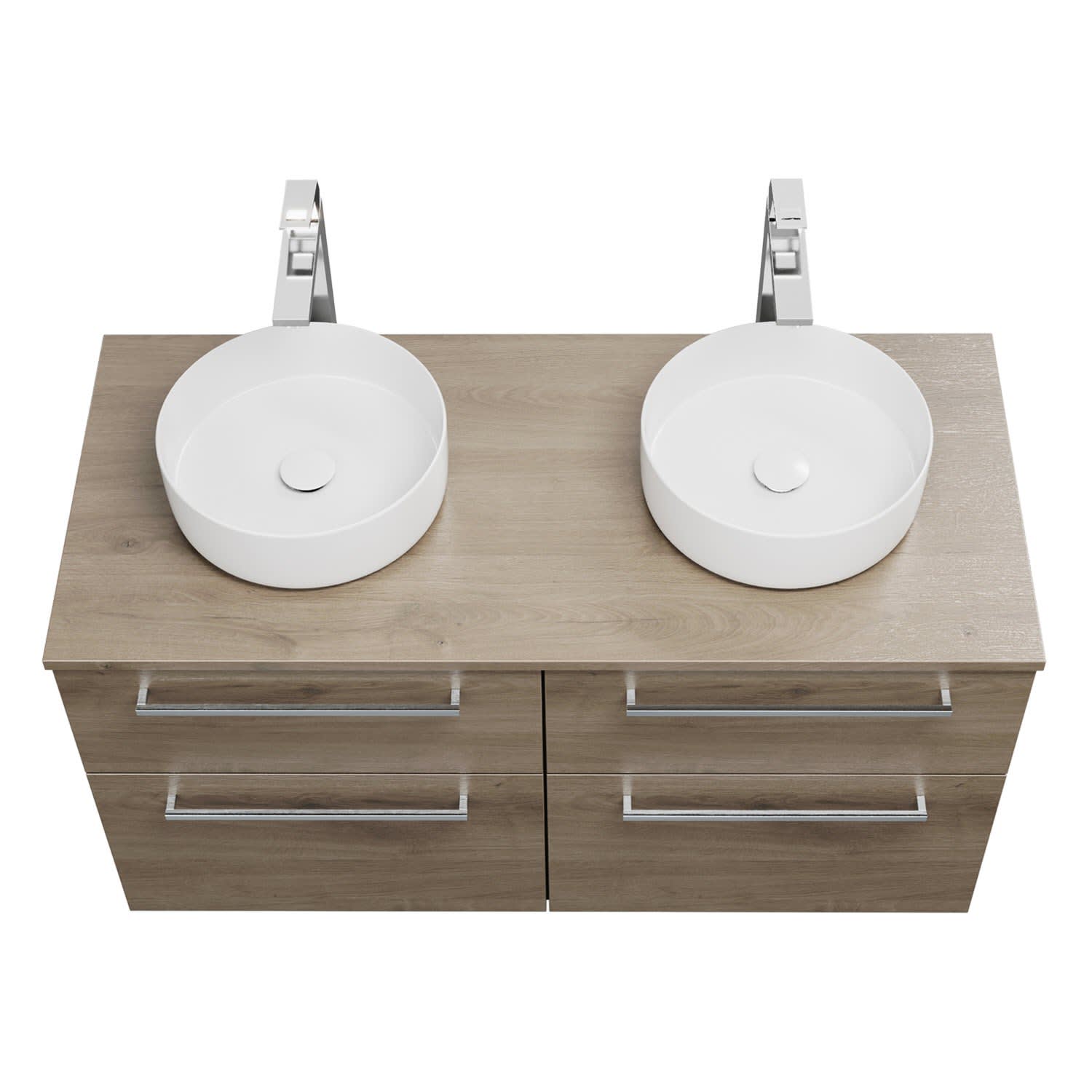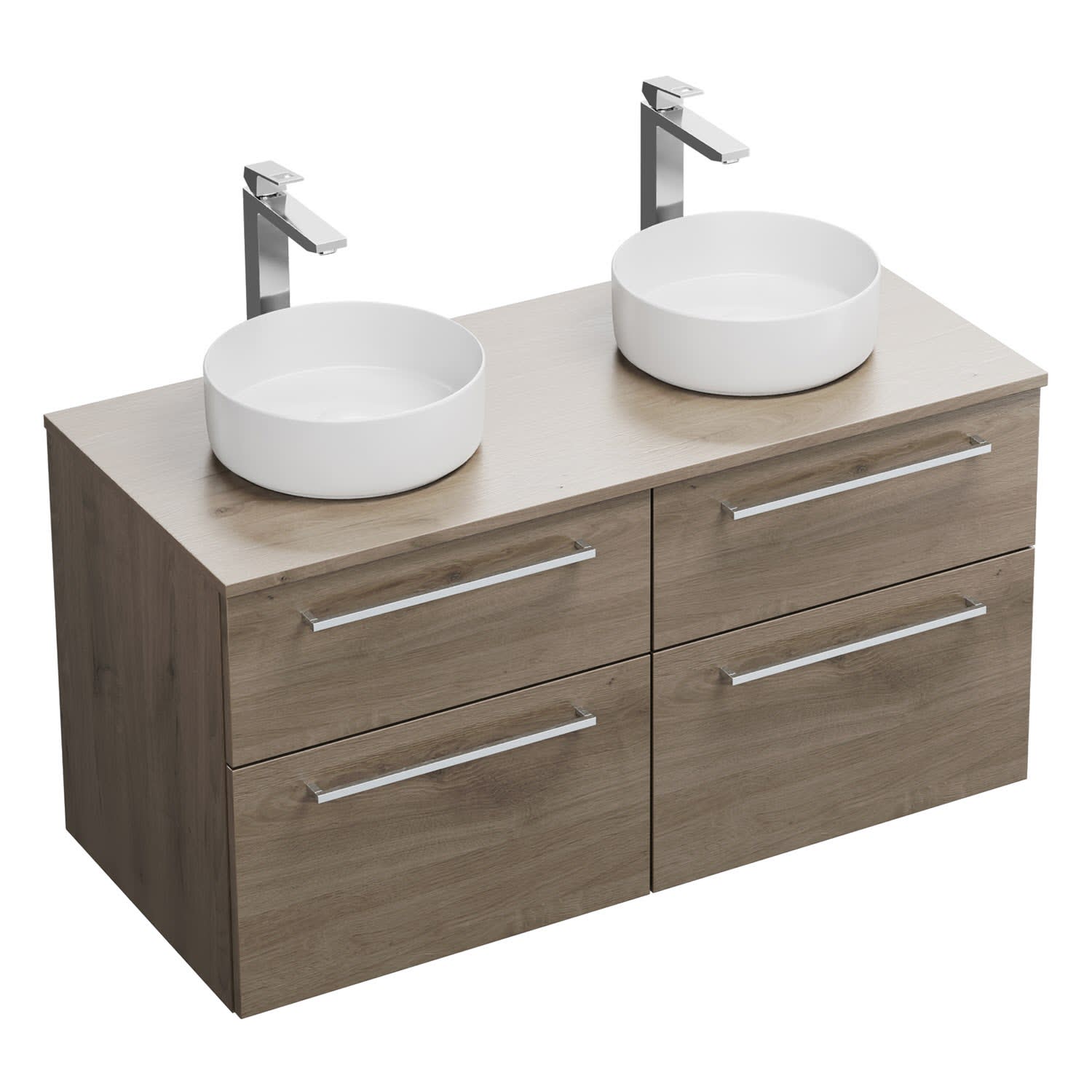 burgbad Eqio Waschtischkombination mit Keramik-Aufsatzwaschtisch 120 cm, links und rechts, mit Stangengriff P95