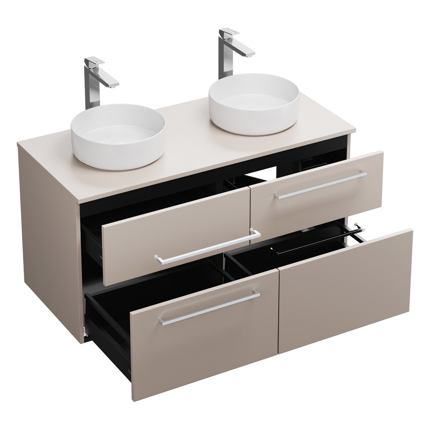 burgbad Eqio Waschtischkombination mit Keramik-Aufsatzwaschtisch 120 cm, links und rechts, mit Stangengriff P95