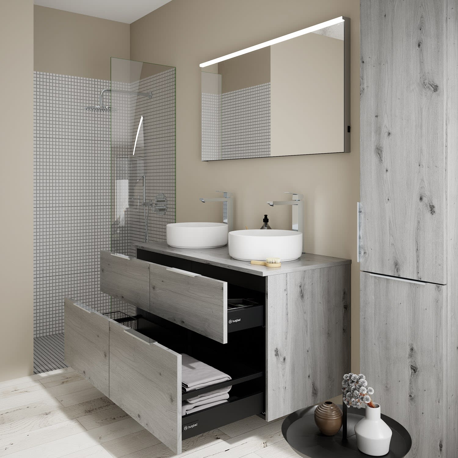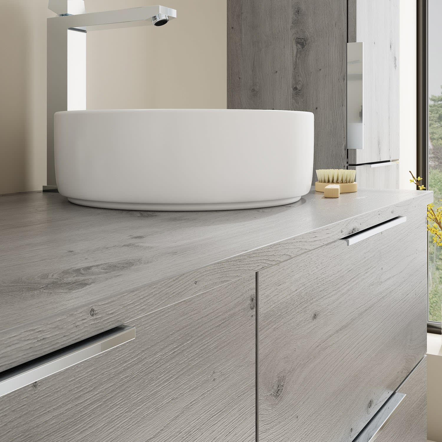 burgbad Eqio Waschtischkombination mit Keramik-Aufsatzwaschtisch 120 cm, links und rechts, mit Griff G0146