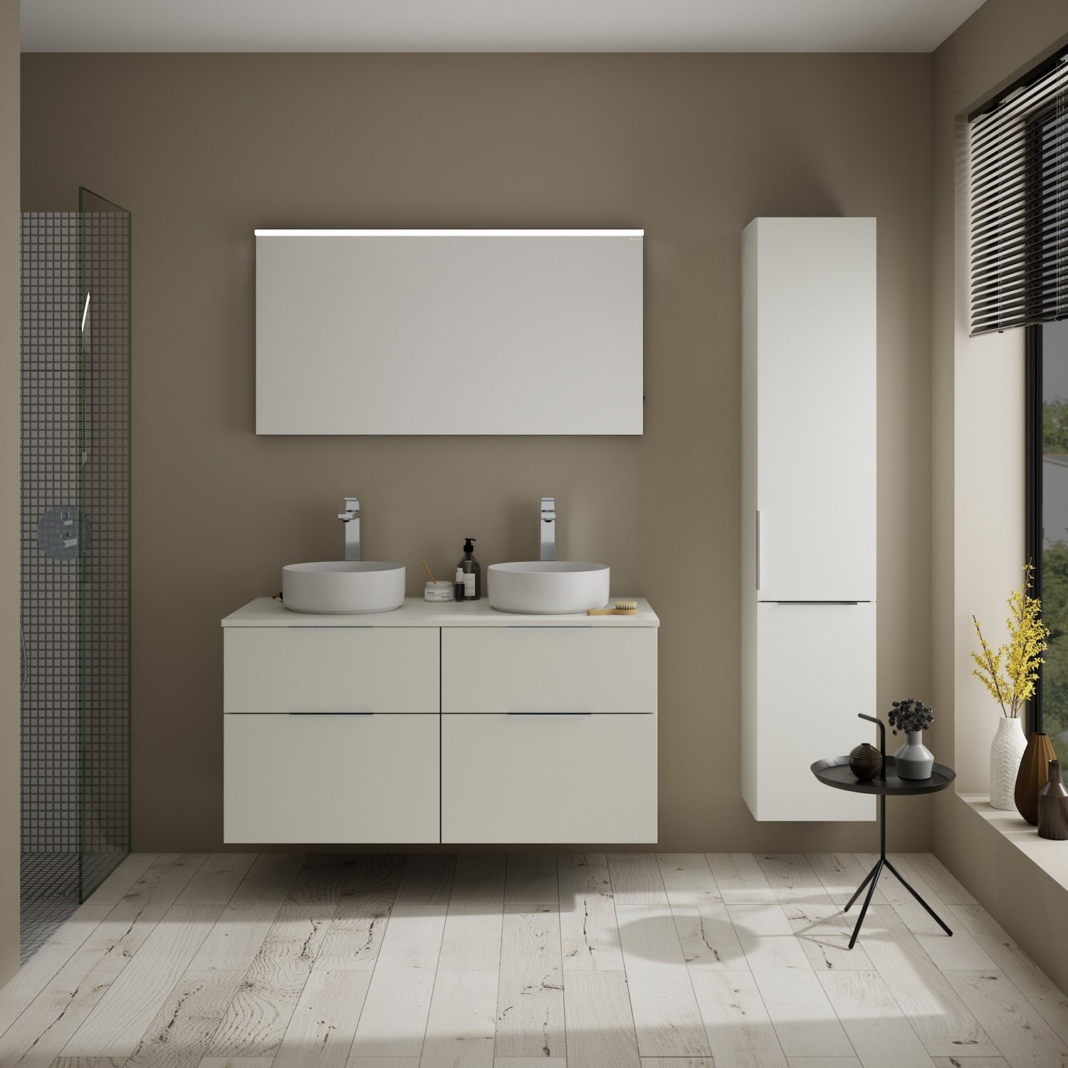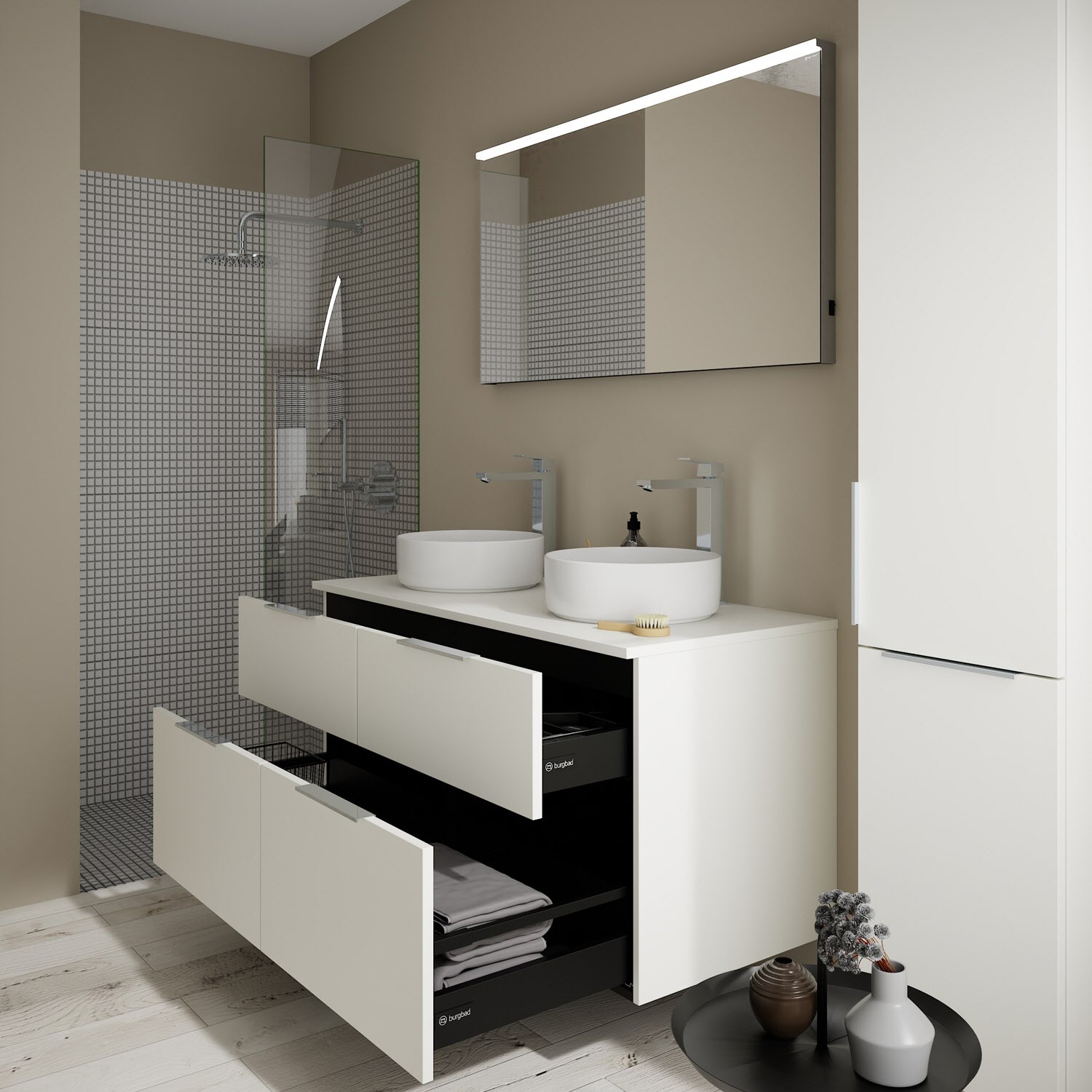 burgbad Eqio Waschtischkombination mit Keramik-Aufsatzwaschtisch 120 cm, links und rechts, mit Griff G0146